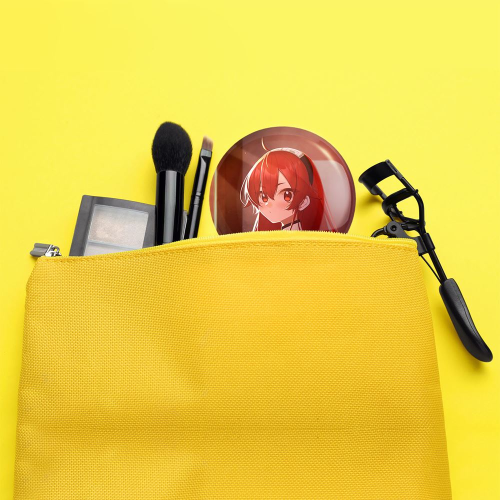 آینه های جیبی اریس انیمه موشوکو تنسی خندالو دایره ای به قطر 7.5 سانتی متر می باشد که نه خیلی بزرگ و غیر قابل استفاده در کیف آرایشی ست و نه خیلی کوچک که تصویر خاصی در آن مشاهده نشود. سایزی استاندارد و کارآمد دارد و مناسب قرار گیری در کیف لوازم آرایش و کیف های کوچک دستی نیز هست.
