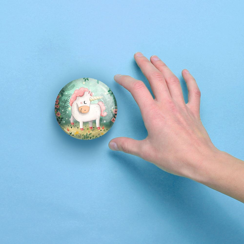 آینه های جیبی اسب تک شاخ پونی خندالو دایره ای به قطر 7.5 سانتی متر می باشد که نه خیلی بزرگ و غیر قابل استفاده در کیف آرایشی ست و نه خیلی کوچک که تصویر خاصی در آن مشاهده نشود. سایزی استاندارد و کارآمد دارد و مناسب قرار گیری در کیف لوازم آرایش و کیف های کوچک دستی نیز هست.