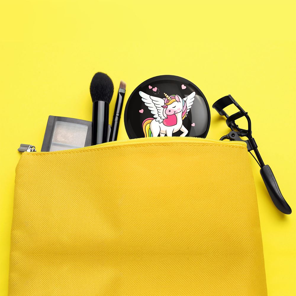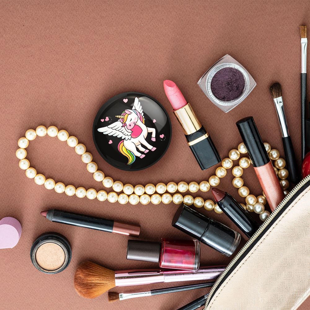 آینه های جیبی اسب تک شاخ خندالو دایره ای به قطر 7.5 سانتی متر می باشد که نه خیلی بزرگ و غیر قابل استفاده در کیف آرایشی ست و نه خیلی کوچک که تصویر خاصی در آن مشاهده نشود. سایزی استاندارد و کارآمد دارد و مناسب قرار گیری در کیف لوازم آرایش و کیف های کوچک دستی نیز هست.