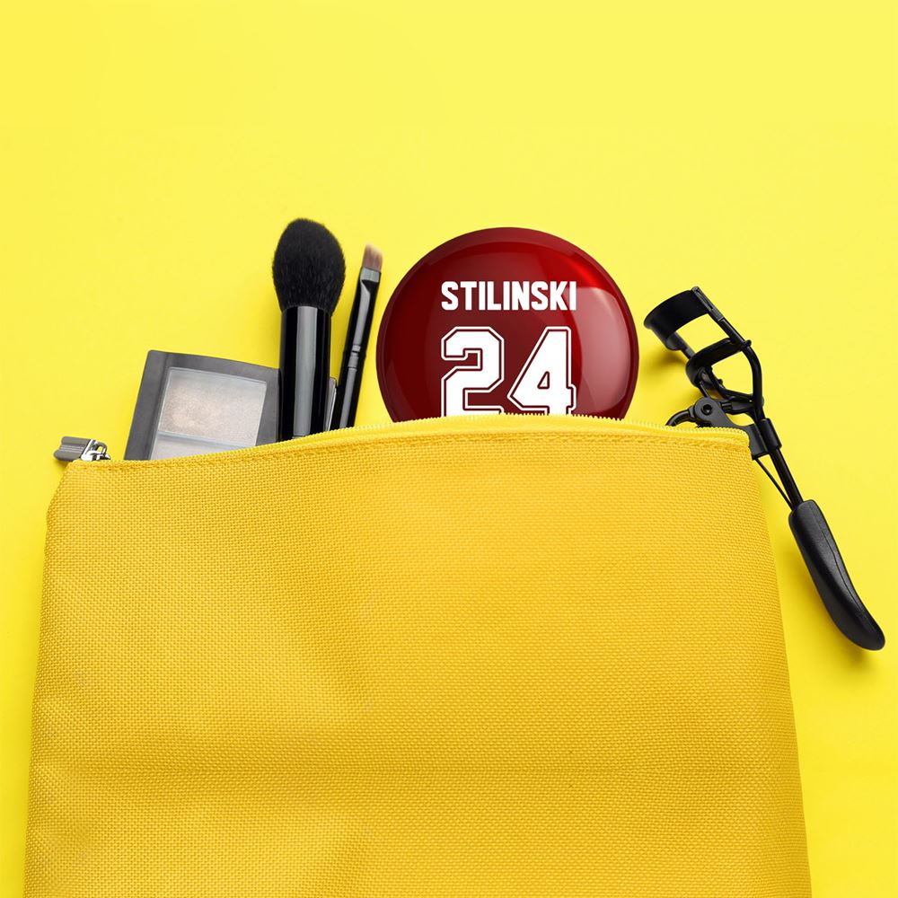 آینه های جیبی استایلز استلینسکی سریال تین ولف Teen Wolf خندالو دایره ای به قطر 7.5 سانتی متر می باشد که نه خیلی بزرگ و غیر قابل استفاده در کیف آرایشی ست و نه خیلی کوچک که تصویر خاصی در آن مشاهده نشود. سایزی استاندارد و کارآمد دارد و مناسب قرار گیری در کیف لوازم آرایش و کیف های کوچک دستی نیز هست.