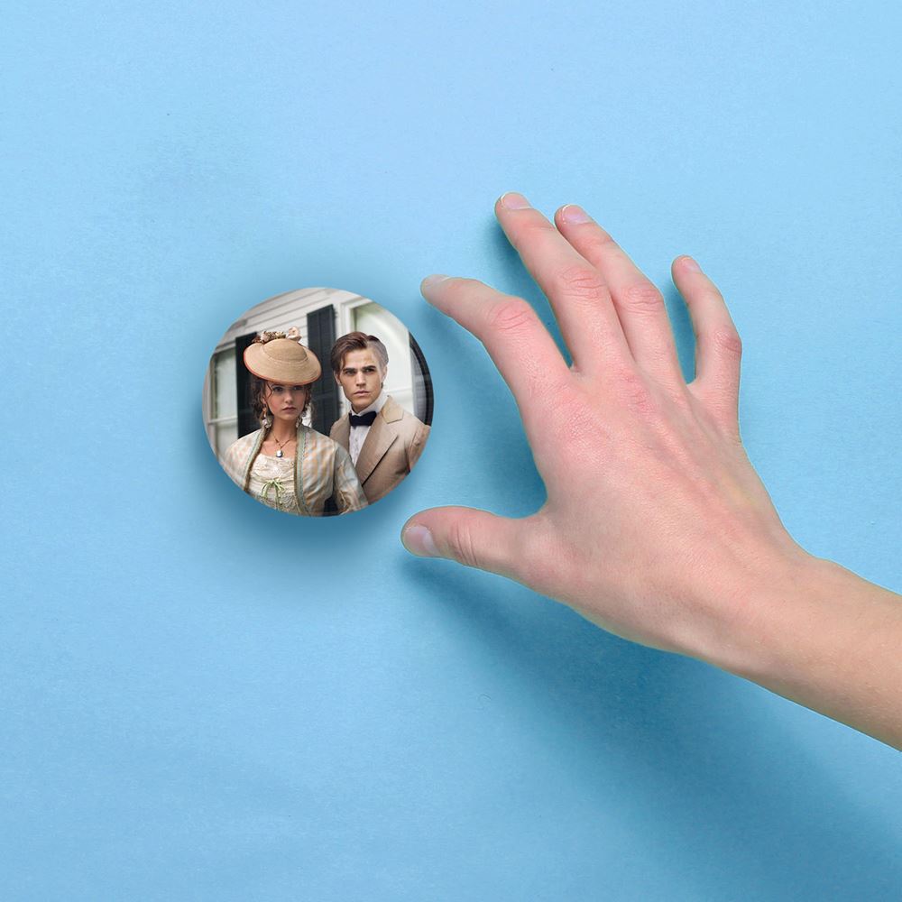 آینه های جیبی استفان و کاترین خاطرات یک خون آشام The Vampire Diaries خندالو دایره ای به قطر 7.5 سانتی متر می باشد که نه خیلی بزرگ و غیر قابل استفاده در کیف آرایشی ست و نه خیلی کوچک که تصویر خاصی در آن مشاهده نشود. سایزی استاندارد و کارآمد دارد و مناسب قرار گیری در کیف لوازم آرایش و کیف های کوچک دستی نیز هست. بدنه ی آینه جیبی استفان و کاترین خاطرات یک خون آشام The Vampire Diaries در قسمتی که آینه را در بر گرفته فلزی بوده و ظاهر براق و بسیار زیبایی دارد. چاپ طرح در پشت آینه بوسیله چاپگرهای دیجیتال شش رنگ با شفافیت و کیفیتی مثال زدنی انجام گرفته و با روکش لمینت حرارتی پوشیده شده که در مقابل آسیب و خط و خش مقاوم بوده و کیفیت بالایی دارد. آینه های جیبی استفان و کاترین خاطرات یک خون آشام The Vampire Diaries خندالو با تنوع طرحی بسیار بالا، سلیقه هر نوع مخاطبی را تامین میکند.