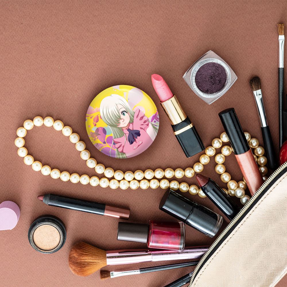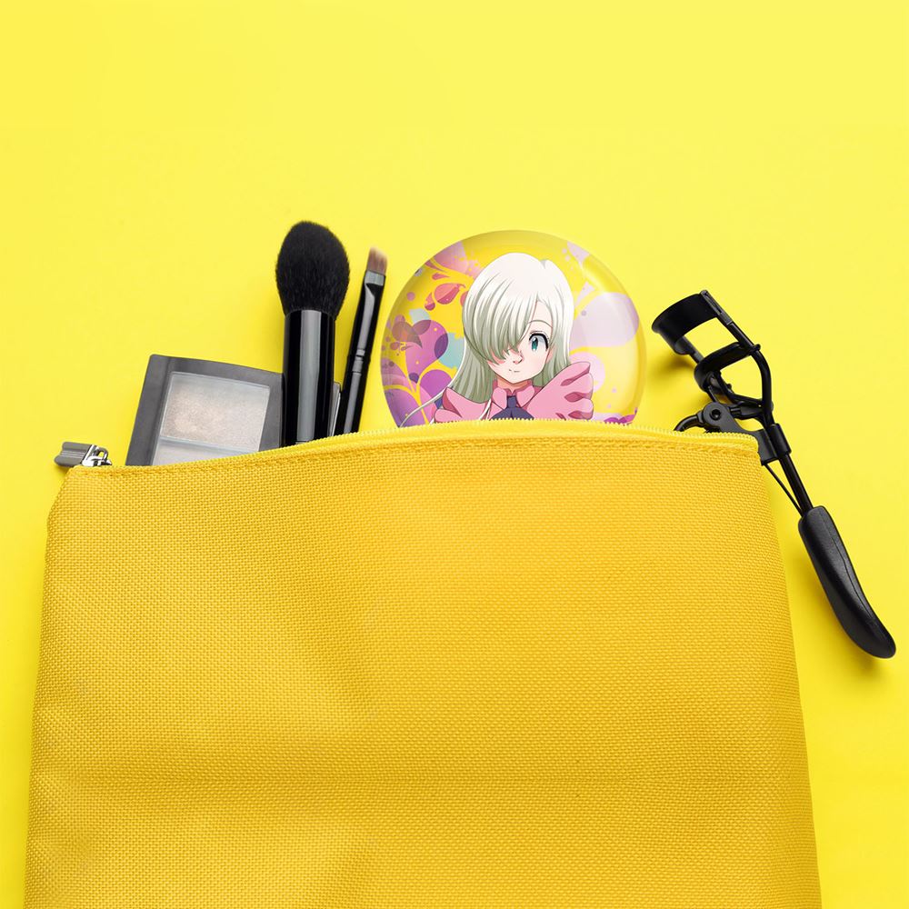 آینه های جیبی الیزابت انیمه هفت گناه کبیره خندالو دایره ای به قطر 7.5 سانتی متر می باشد که نه خیلی بزرگ و غیر قابل استفاده در کیف آرایشی ست و نه خیلی کوچک که تصویر خاصی در آن مشاهده نشود. سایزی استاندارد و کارآمد دارد و مناسب قرار گیری در کیف لوازم آرایش و کیف های کوچک دستی نیز هست.