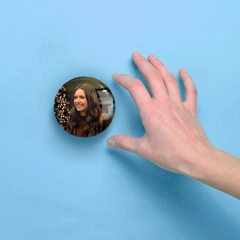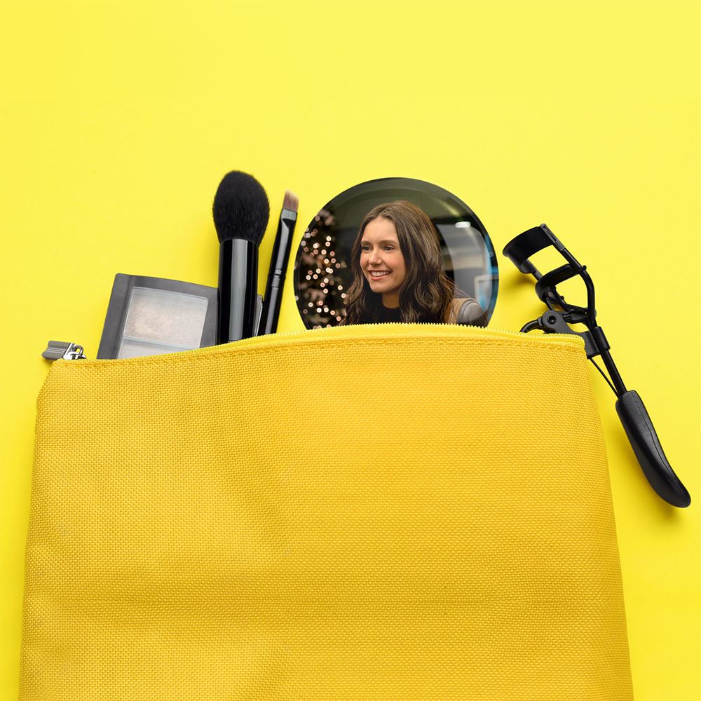 آینه های جیبی الینا گیلبرت خاطرات یک خون آشام The Vampire Diaries خندالو دایره ای به قطر 7.5 سانتی متر می باشد که نه خیلی بزرگ و غیر قابل استفاده در کیف آرایشی ست و نه خیلی کوچک که تصویر خاصی در آن مشاهده نشود. سایزی استاندارد و کارآمد دارد و مناسب قرار گیری در کیف لوازم آرایش و کیف های کوچک دستی نیز هست.