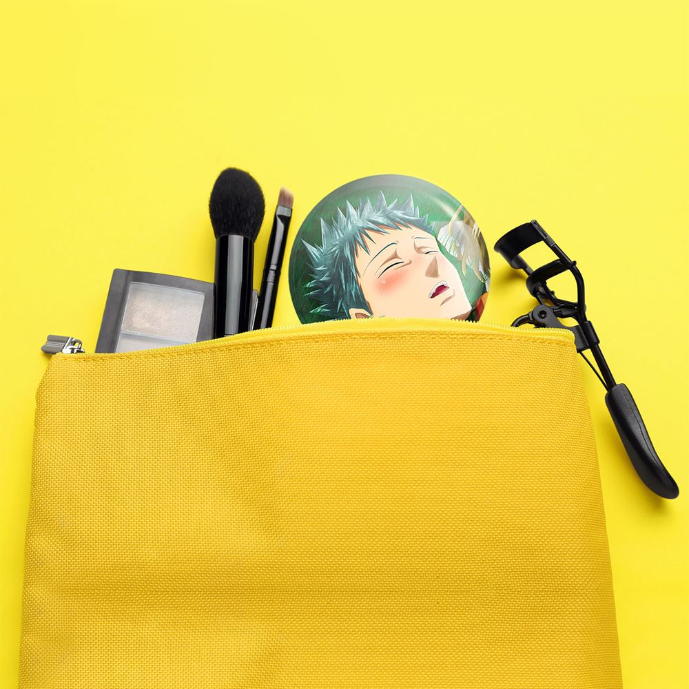 آینه های جیبی الین و بن انیمه هفت گناه کبیره خندالو دایره ای به قطر 7.5 سانتی متر می باشد که نه خیلی بزرگ و غیر قابل استفاده در کیف آرایشی ست و نه خیلی کوچک که تصویر خاصی در آن مشاهده نشود. سایزی استاندارد و کارآمد دارد و مناسب قرار گیری در کیف لوازم آرایش و کیف های کوچک دستی نیز هست.