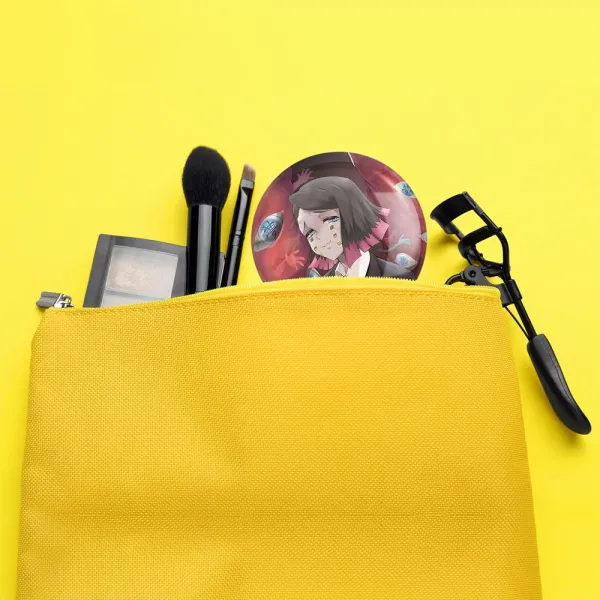 آینه های جیبی انمو انیمه شیطان کش خندالو دایره ای به قطر 7.5 سانتی متر می باشد که نه خیلی بزرگ و غیر قابل استفاده در کیف آرایشی ست و نه خیلی کوچک که تصویر خاصی در آن مشاهده نشود. سایزی استاندارد و کارآمد دارد و مناسب قرار گیری در کیف لوازم آرایش و کیف های کوچک دستی نیز هست.