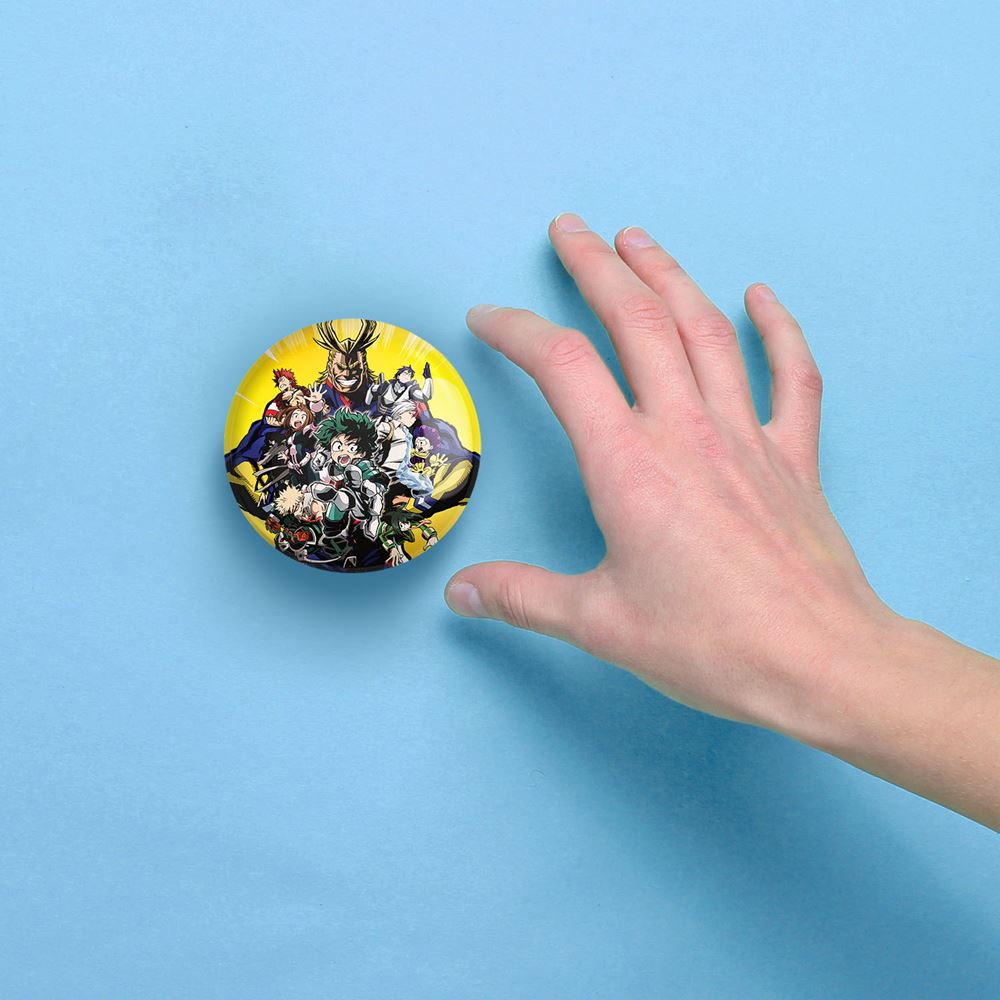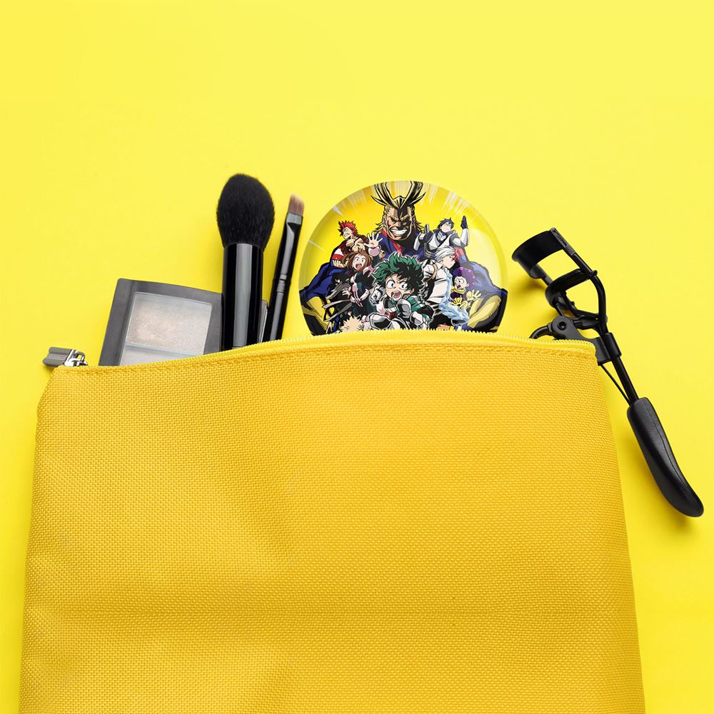 آینه های جیبی انیمه آکادمی قهرمان من خندالو دایره ای به قطر 7.5 سانتی متر می باشد که نه خیلی بزرگ و غیر قابل استفاده در کیف آرایشی ست و نه خیلی کوچک که تصویر خاصی در آن مشاهده نشود. سایزی استاندارد و کارآمد دارد و مناسب قرار گیری در کیف لوازم آرایش و کیف های کوچک دستی نیز هست. بدنه ی آینه جیبی انیمه آکادمی قهرمان من در قسمتی که آینه را در بر گرفته فلزی بوده و ظاهر براق و بسیار زیبایی دارد. چاپ طرح در پشت آینه بوسیله چاپگرهای دیجیتال شش رنگ با شفافیت و کیفیتی مثال زدنی انجام گرفته و با روکش لمینت حرارتی پوشیده شده که در مقابل آسیب و خط و خش مقاوم بوده و کیفیت بالایی دارد. آینه های جیبی انیمه آکادمی قهرمان من خندالو با تنوع طرحی بسیار بالا، سلیقه هر نوع مخاطبی را تامین میکند.