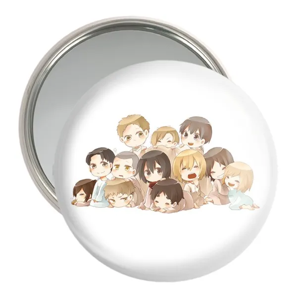 آینه های جیبی انیمه اتک آن تایتان Attack on Titan خندالو دایره ای به قطر 7.5 سانتی متر می باشد که نه خیلی بزرگ و غیر قابل استفاده در کیف آرایشی ست و نه خیلی کوچک که تصویر خاصی در آن مشاهده نشود. سایزی استاندارد و کارآمد دارد و مناسب قرار گیری در کیف لوازم آرایش و کیف های کوچک دستی نیز هست. بدنه ی آینه جیبی انیمه اتک آن تایتان Attack on Titan در قسمتی که آینه را در بر گرفته فلزی بوده و ظاهر براق و بسیار زیبایی دارد. چاپ طرح در پشت آینه بوسیله چاپگرهای دیجیتال شش رنگ با شفافیت و کیفیتی مثال زدنی انجام گرفته و با روکش لمینت حرارتی پوشیده شده که در مقابل آسیب و خط و خش مقاوم بوده و کیفیت بالایی دارد. آینه های جیبی انیمه اتک آن تایتان Attack on Titan خندالو با تنوع طرحی بسیار بالا، سلیقه هر نوع مخاطبی را تامین میکند.