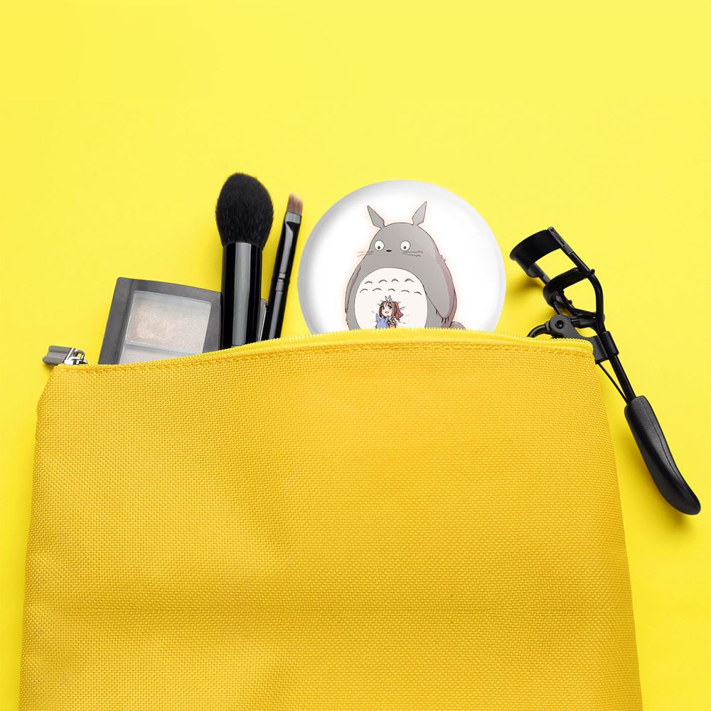 آینه های جیبی انیمه توتورو Totoro خندالو دایره ای به قطر 7.5 سانتی متر می باشد که نه خیلی بزرگ و غیر قابل استفاده در کیف آرایشی ست و نه خیلی کوچک که تصویر خاصی در آن مشاهده نشود. سایزی استاندارد و کارآمد دارد و مناسب قرار گیری در کیف لوازم آرایش و کیف های کوچک دستی نیز هست.