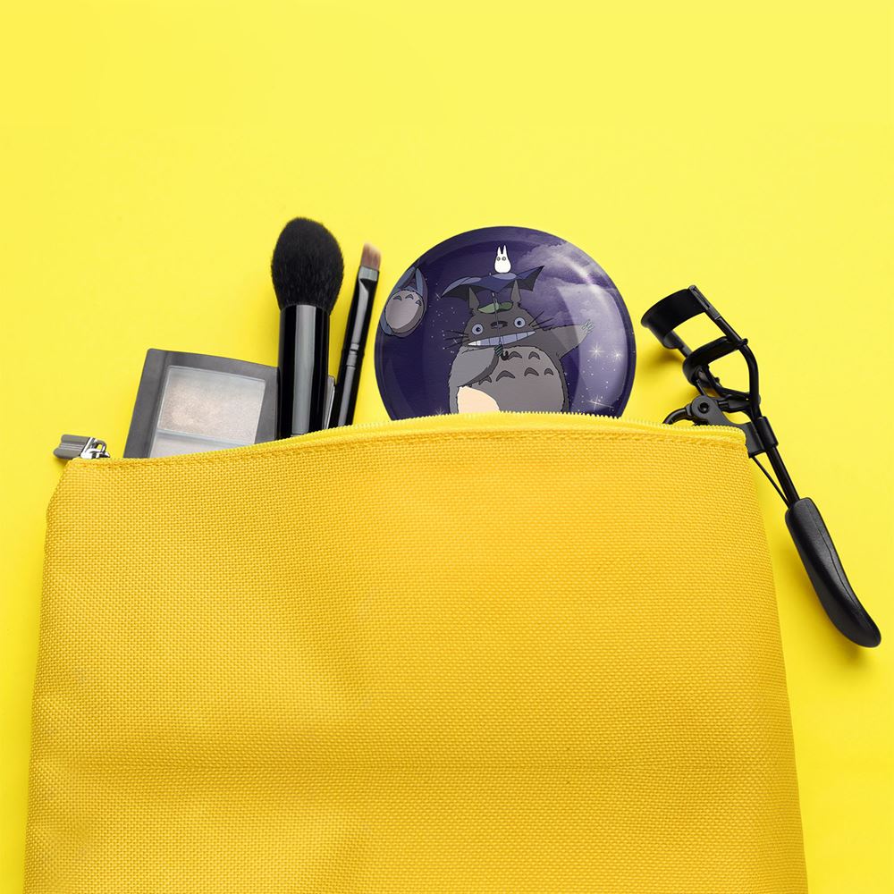 آینه های جیبی انیمه توتورو Totoro خندالو دایره ای به قطر 7.5 سانتی متر می باشد که نه خیلی بزرگ و غیر قابل استفاده در کیف آرایشی ست و نه خیلی کوچک که تصویر خاصی در آن مشاهده نشود. سایزی استاندارد و کارآمد دارد و مناسب قرار گیری در کیف لوازم آرایش و کیف های کوچک دستی نیز هست.