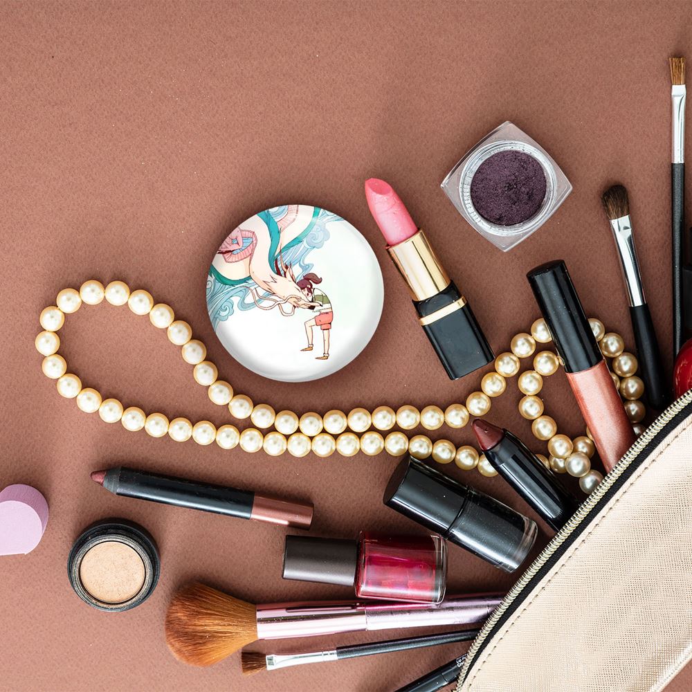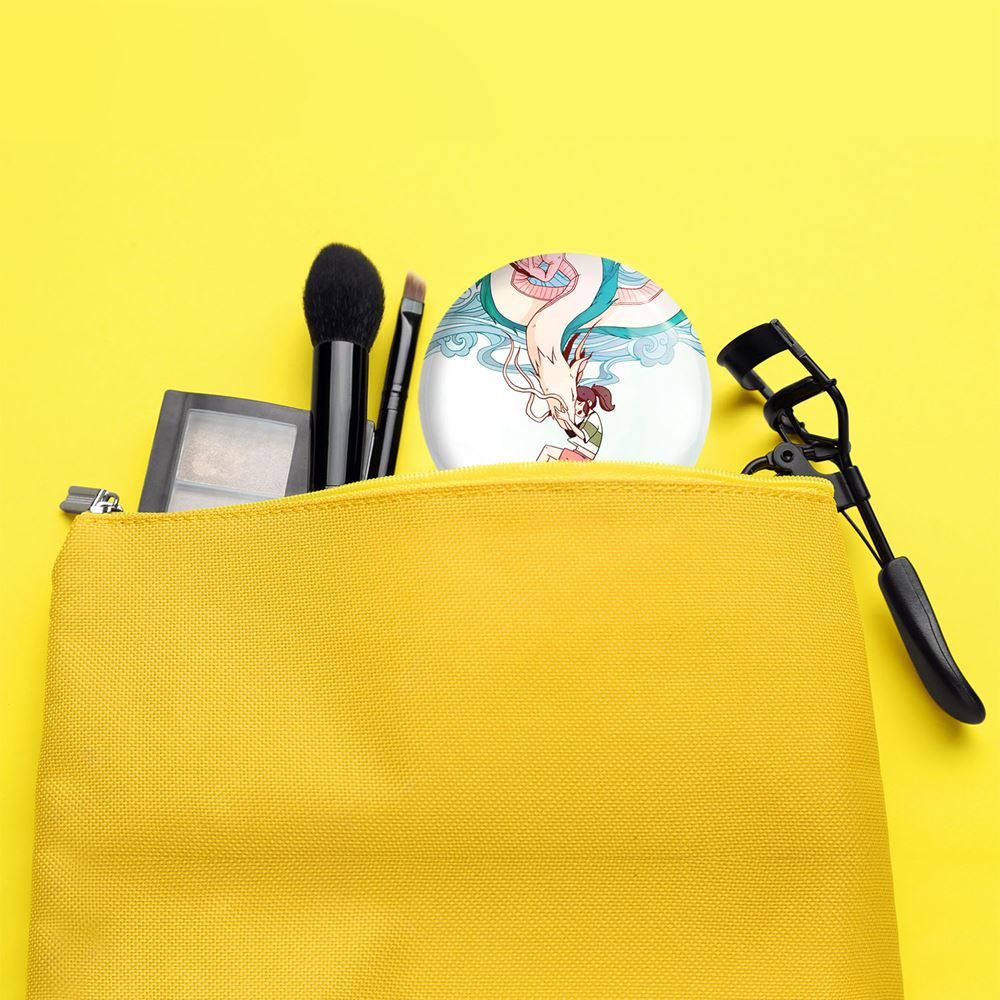 آینه های جیبی انیمه شهر اشباح Spirited Away خندالو دایره ای به قطر 7.5 سانتی متر می باشد که نه خیلی بزرگ و غیر قابل استفاده در کیف آرایشی ست و نه خیلی کوچک که تصویر خاصی در آن مشاهده نشود. سایزی استاندارد و کارآمد دارد و مناسب قرار گیری در کیف لوازم آرایش و کیف های کوچک دستی نیز هست.