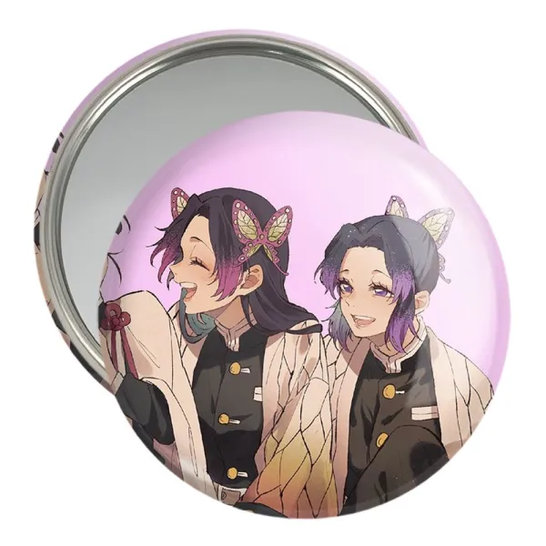 آینه های جیبی انیمه شیطان کش خندالو دایره ای به قطر 7.5 سانتی متر می باشد که نه خیلی بزرگ و غیر قابل استفاده در کیف آرایشی ست و نه خیلی کوچک که تصویر خاصی در آن مشاهده نشود. سایزی استاندارد و کارآمد دارد و مناسب قرار گیری در کیف لوازم آرایش و کیف های کوچک دستی نیز هست.