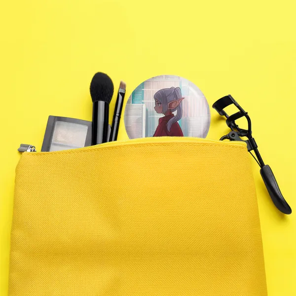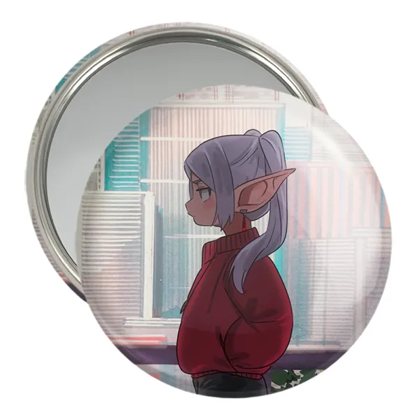 آینه های جیبی انیمه فریرن (Frieren) خندالو دایره ای به قطر 7.5 سانتی متر می باشد که نه خیلی بزرگ و غیر قابل استفاده در کیف آرایشی ست و نه خیلی کوچک که تصویر خاصی در آن مشاهده نشود. سایزی استاندارد و کارآمد دارد و مناسب قرار گیری در کیف لوازم آرایش و کیف های کوچک دستی نیز هست.
