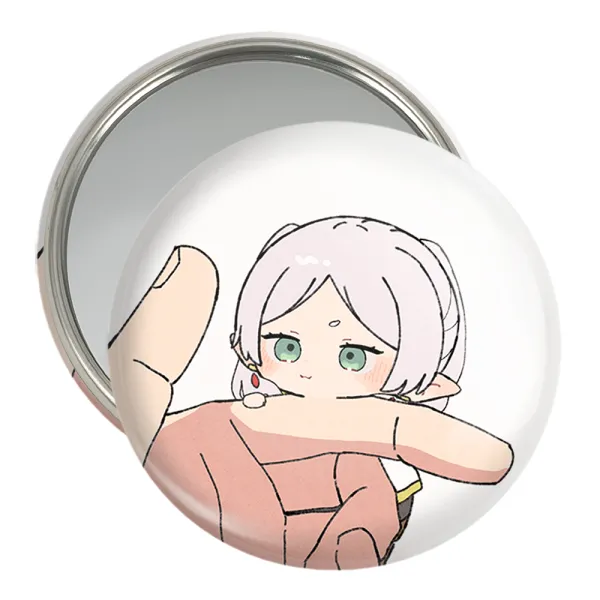 آینه های جیبی انیمه فریرن (Frieren) خندالو دایره ای به قطر 7.5 سانتی متر می باشد که نه خیلی بزرگ و غیر قابل استفاده در کیف آرایشی ست و نه خیلی کوچک که تصویر خاصی در آن مشاهده نشود. سایزی استاندارد و کارآمد دارد و مناسب قرار گیری در کیف لوازم آرایش و کیف های کوچک دستی نیز هست.