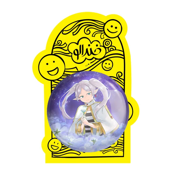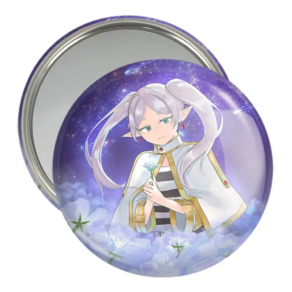 آینه های جیبی انیمه فریرن (Frieren) خندالو دایره ای به قطر 7.5 سانتی متر می باشد که نه خیلی بزرگ و غیر قابل استفاده در کیف آرایشی ست و نه خیلی کوچک که تصویر خاصی در آن مشاهده نشود. سایزی استاندارد و کارآمد دارد و مناسب قرار گیری در کیف لوازم آرایش و کیف های کوچک دستی نیز هست.