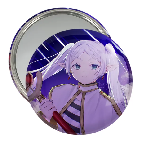 آینه های جیبی انیمه فریرن (Frieren) خندالو دایره ای به قطر 7.5 سانتی متر می باشد که نه خیلی بزرگ و غیر قابل استفاده در کیف آرایشی ست و نه خیلی کوچک که تصویر خاصی در آن مشاهده نشود. سایزی استاندارد و کارآمد دارد و مناسب قرار گیری در کیف لوازم آرایش و کیف های کوچک دستی نیز هست.