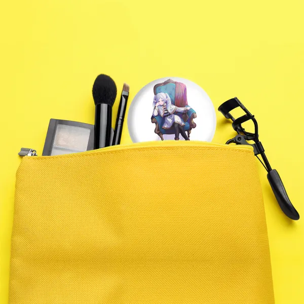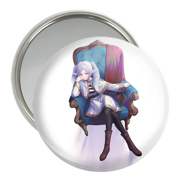 آینه های جیبی انیمه فریرن (Frieren) خندالو دایره ای به قطر 7.5 سانتی متر می باشد که نه خیلی بزرگ و غیر قابل استفاده در کیف آرایشی ست و نه خیلی کوچک که تصویر خاصی در آن مشاهده نشود. سایزی استاندارد و کارآمد دارد و مناسب قرار گیری در کیف لوازم آرایش و کیف های کوچک دستی نیز هست.