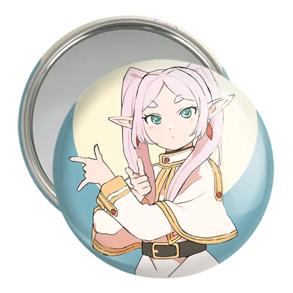 آینه های جیبی انیمه فریرن (Frieren) خندالو دایره ای به قطر 7.5 سانتی متر می باشد که نه خیلی بزرگ و غیر قابل استفاده در کیف آرایشی ست و نه خیلی کوچک که تصویر خاصی در آن مشاهده نشود. سایزی استاندارد و کارآمد دارد و مناسب قرار گیری در کیف لوازم آرایش و کیف های کوچک دستی نیز هست.