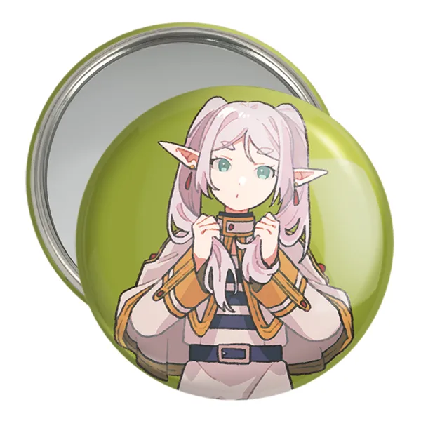 آینه های جیبی انیمه فریرن (Frieren) خندالو دایره ای به قطر 7.5 سانتی متر می باشد که نه خیلی بزرگ و غیر قابل استفاده در کیف آرایشی ست و نه خیلی کوچک که تصویر خاصی در آن مشاهده نشود. سایزی استاندارد و کارآمد دارد و مناسب قرار گیری در کیف لوازم آرایش و کیف های کوچک دستی نیز هست.