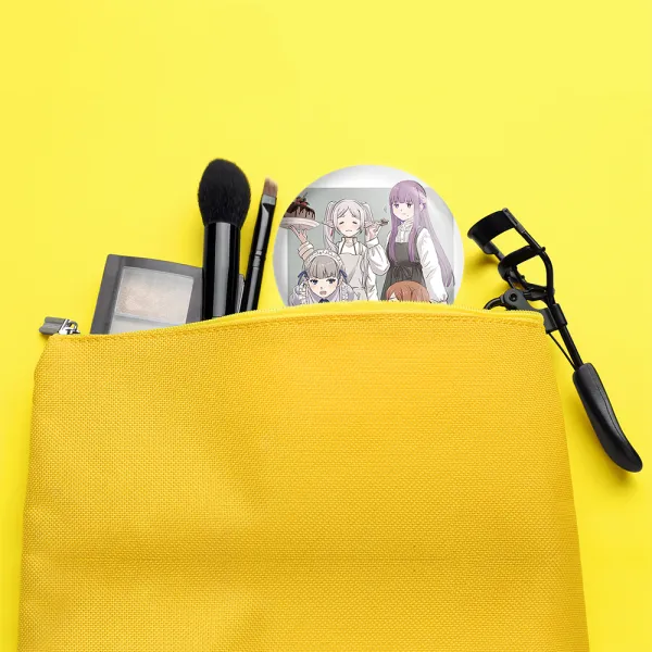 آینه های جیبی انیمه فریرن (Frieren) خندالو دایره ای به قطر 7.5 سانتی متر می باشد که نه خیلی بزرگ و غیر قابل استفاده در کیف آرایشی ست و نه خیلی کوچک که تصویر خاصی در آن مشاهده نشود. سایزی استاندارد و کارآمد دارد و مناسب قرار گیری در کیف لوازم آرایش و کیف های کوچک دستی نیز هست.