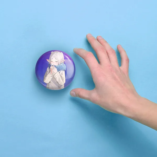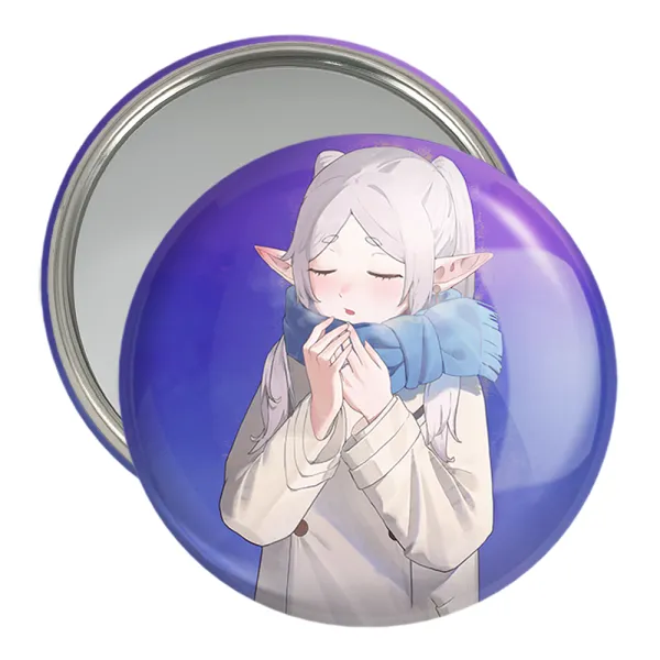 آینه های جیبی انیمه فریرن (Frieren) خندالو دایره ای به قطر 7.5 سانتی متر می باشد که نه خیلی بزرگ و غیر قابل استفاده در کیف آرایشی ست و نه خیلی کوچک که تصویر خاصی در آن مشاهده نشود. سایزی استاندارد و کارآمد دارد و مناسب قرار گیری در کیف لوازم آرایش و کیف های کوچک دستی نیز هست.