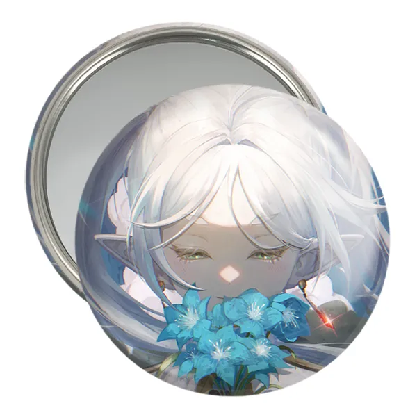 آینه های جیبی انیمه فریرن (Frieren) خندالو دایره ای به قطر 7.5 سانتی متر می باشد که نه خیلی بزرگ و غیر قابل استفاده در کیف آرایشی ست و نه خیلی کوچک که تصویر خاصی در آن مشاهده نشود. سایزی استاندارد و کارآمد دارد و مناسب قرار گیری در کیف لوازم آرایش و کیف های کوچک دستی نیز هست.