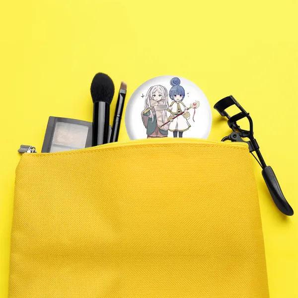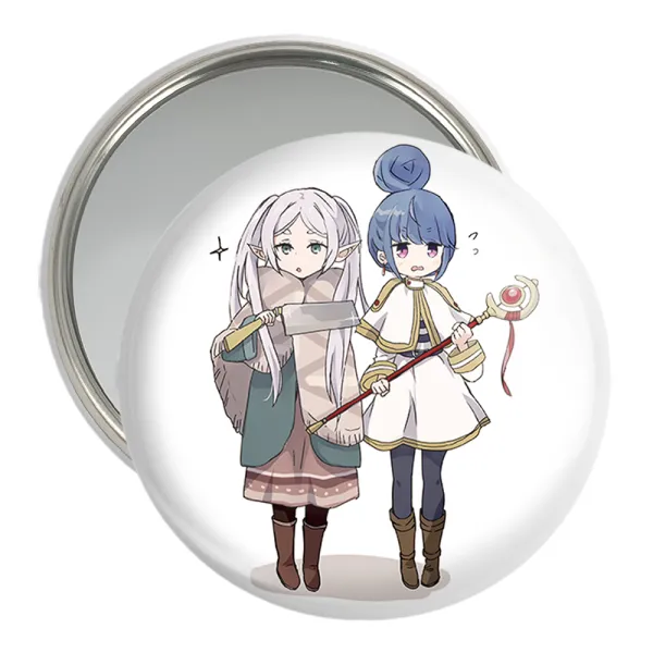آینه های جیبی انیمه فریرن (Frieren) خندالو دایره ای به قطر 7.5 سانتی متر می باشد که نه خیلی بزرگ و غیر قابل استفاده در کیف آرایشی ست و نه خیلی کوچک که تصویر خاصی در آن مشاهده نشود. سایزی استاندارد و کارآمد دارد و مناسب قرار گیری در کیف لوازم آرایش و کیف های کوچک دستی نیز هست.