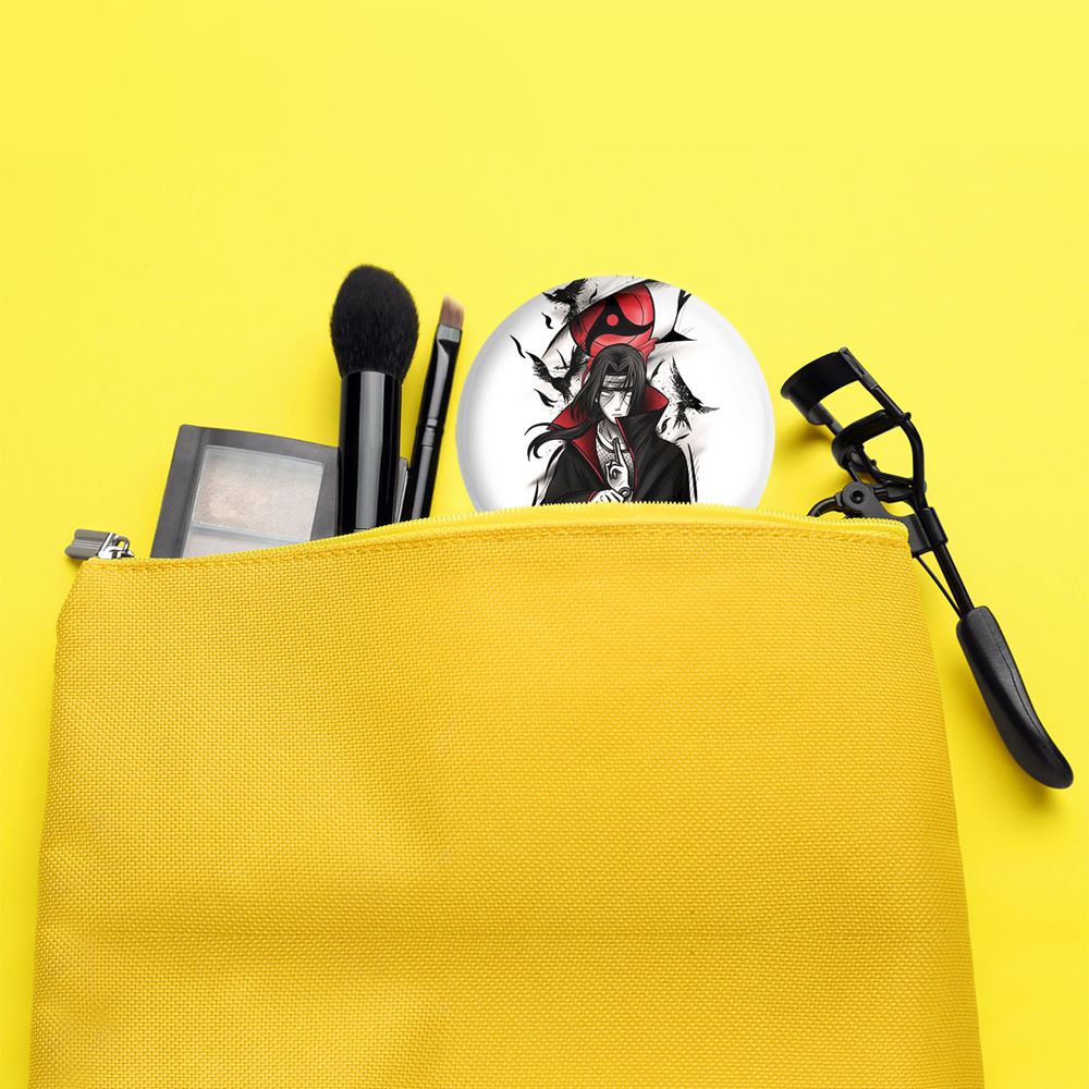 آینه های جیبی انیمه ناروتو شارینگان خندالو دایره ای به قطر 7.5 سانتی متر می باشد که نه خیلی بزرگ و غیر قابل استفاده در کیف آرایشی ست و نه خیلی کوچک که تصویر خاصی در آن مشاهده نشود. سایزی استاندارد و کارآمد دارد و مناسب قرار گیری در کیف لوازم آرایش و کیف های کوچک دستی نیز هست.