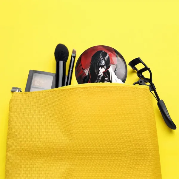 آینه های جیبی انیمه ناروتو شارینگان خندالو دایره ای به قطر 7.5 سانتی متر می باشد که نه خیلی بزرگ و غیر قابل استفاده در کیف آرایشی ست و نه خیلی کوچک که تصویر خاصی در آن مشاهده نشود. سایزی استاندارد و کارآمد دارد و مناسب قرار گیری در کیف لوازم آرایش و کیف های کوچک دستی نیز هست.