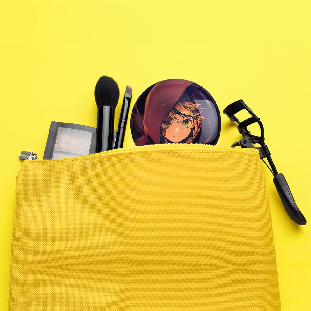آینه های جیبی انیمه ناکجاآباد موعود خندالو دایره ای به قطر 7.5 سانتی متر می باشد که نه خیلی بزرگ و غیر قابل استفاده در کیف آرایشی ست و نه خیلی کوچک که تصویر خاصی در آن مشاهده نشود. سایزی استاندارد و کارآمد دارد و مناسب قرار گیری در کیف لوازم آرایش و کیف های کوچک دستی نیز هست.