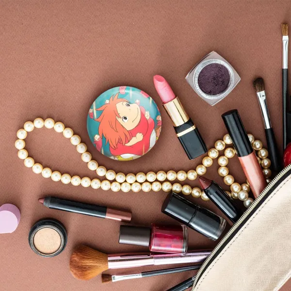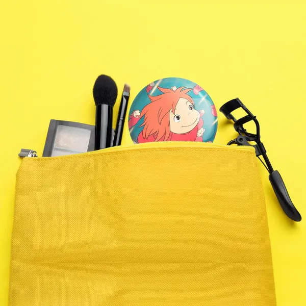 آینه های جیبی انیمه پونیو Ponyo خندالو دایره ای به قطر 7.5 سانتی متر می باشد که نه خیلی بزرگ و غیر قابل استفاده در کیف آرایشی ست و نه خیلی کوچک که تصویر خاصی در آن مشاهده نشود. سایزی استاندارد و کارآمد دارد و مناسب قرار گیری در کیف لوازم آرایش و کیف های کوچک دستی نیز هست.