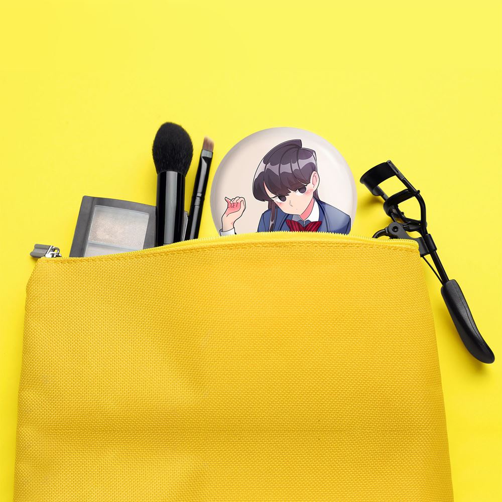 آینه های جیبی انیمه کومی سان خندالو دایره ای به قطر 7.5 سانتی متر می باشد که نه خیلی بزرگ و غیر قابل استفاده در کیف آرایشی ست و نه خیلی کوچک که تصویر خاصی در آن مشاهده نشود. سایزی استاندارد و کارآمد دارد و مناسب قرار گیری در کیف لوازم آرایش و کیف های کوچک دستی نیز هست.