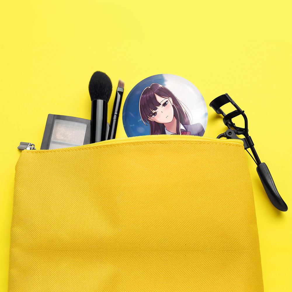 آینه های جیبی انیمه کومی سان خندالو دایره ای به قطر 7.5 سانتی متر می باشد که نه خیلی بزرگ و غیر قابل استفاده در کیف آرایشی ست و نه خیلی کوچک که تصویر خاصی در آن مشاهده نشود. سایزی استاندارد و کارآمد دارد و مناسب قرار گیری در کیف لوازم آرایش و کیف های کوچک دستی نیز هست.
