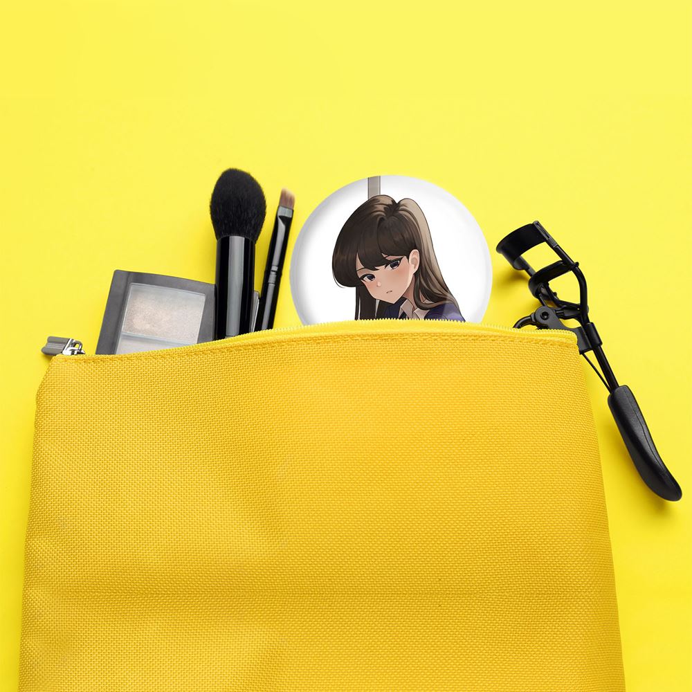 آینه های جیبی انیمه کومی سان خندالو دایره ای به قطر 7.5 سانتی متر می باشد که نه خیلی بزرگ و غیر قابل استفاده در کیف آرایشی ست و نه خیلی کوچک که تصویر خاصی در آن مشاهده نشود. سایزی استاندارد و کارآمد دارد و مناسب قرار گیری در کیف لوازم آرایش و کیف های کوچک دستی نیز هست.