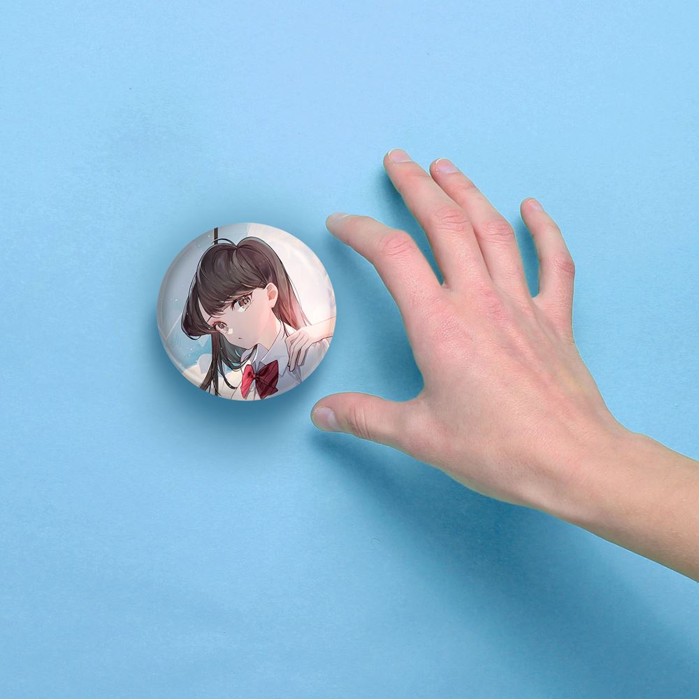 آینه های جیبی انیمه کومی سان خندالو دایره ای به قطر 7.5 سانتی متر می باشد که نه خیلی بزرگ و غیر قابل استفاده در کیف آرایشی ست و نه خیلی کوچک که تصویر خاصی در آن مشاهده نشود. سایزی استاندارد و کارآمد دارد و مناسب قرار گیری در کیف لوازم آرایش و کیف های کوچک دستی نیز هست. بدنه ی آینه جیبی انیمه کومی سان در قسمتی که آینه را در بر گرفته فلزی بوده و ظاهر براق و بسیار زیبایی دارد. چاپ طرح در پشت آینه بوسیله چاپگرهای دیجیتال شش رنگ با شفافیت و کیفیتی مثال زدنی انجام گرفته و با روکش لمینت حرارتی پوشیده شده که در مقابل آسیب و خط و خش مقاوم بوده و کیفیت بالایی دارد. آینه های جیبی انیمه کومی سان خندالو با تنوع طرحی بسیار بالا، سلیقه هر نوع مخاطبی را تامین میکند.
