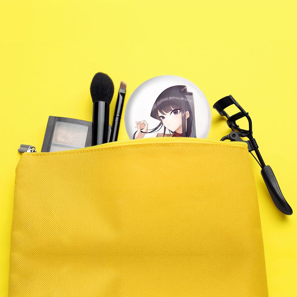 آینه های جیبی انیمه کومی سان خندالو دایره ای به قطر 7.5 سانتی متر می باشد که نه خیلی بزرگ و غیر قابل استفاده در کیف آرایشی ست و نه خیلی کوچک که تصویر خاصی در آن مشاهده نشود. سایزی استاندارد و کارآمد دارد و مناسب قرار گیری در کیف لوازم آرایش و کیف های کوچک دستی نیز هست.