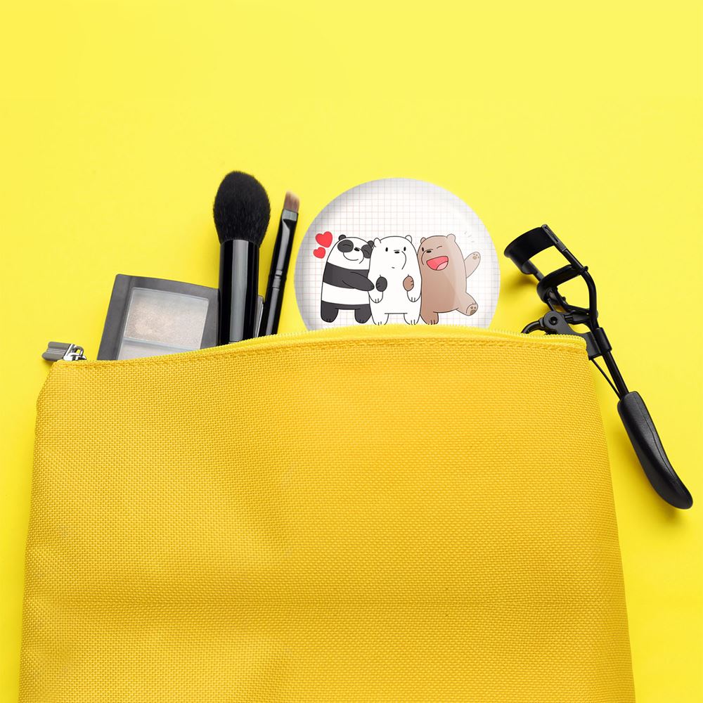 آینه های جیبی انیمیشن سه خرس کله پوک خندالو دایره ای به قطر 7.5 سانتی متر می باشد که نه خیلی بزرگ و غیر قابل استفاده در کیف آرایشی ست و نه خیلی کوچک که تصویر خاصی در آن مشاهده نشود. سایزی استاندارد و کارآمد دارد و مناسب قرار گیری در کیف لوازم آرایش و کیف های کوچک دستی نیز هست.