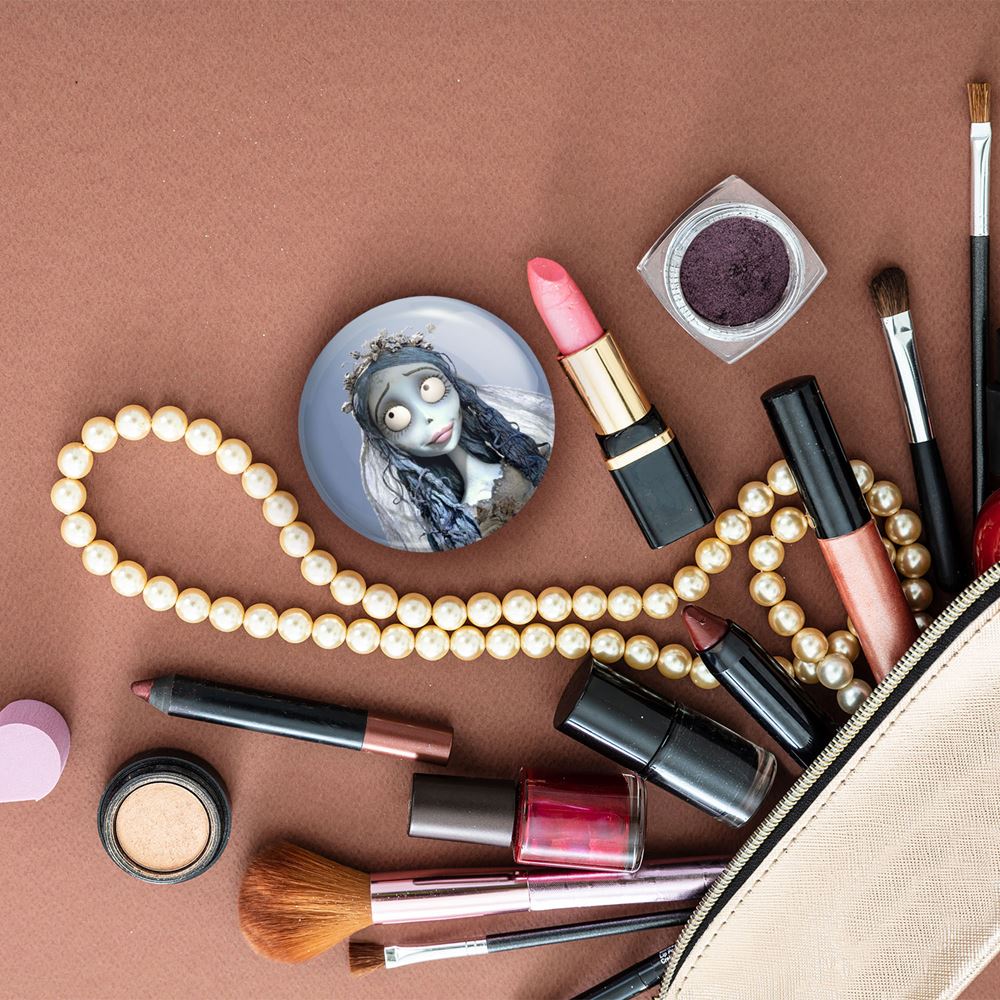 آینه های جیبی انیمیشن عروس مردگان خندالو دایره ای به قطر 7.5 سانتی متر می باشد که نه خیلی بزرگ و غیر قابل استفاده در کیف آرایشی ست و نه خیلی کوچک که تصویر خاصی در آن مشاهده نشود. سایزی استاندارد و کارآمد دارد و مناسب قرار گیری در کیف لوازم آرایش و کیف های کوچک دستی نیز هست.