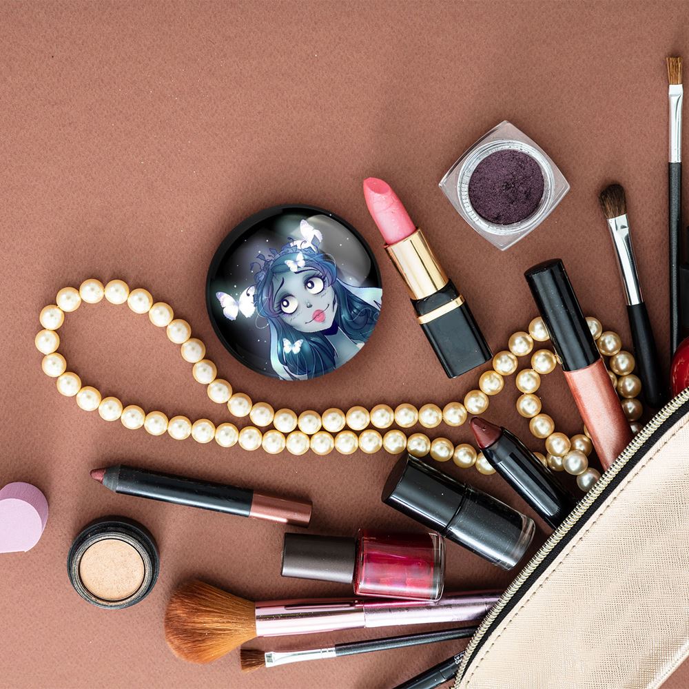آینه های جیبی انیمیشن عروس مردگان خندالو دایره ای به قطر 7.5 سانتی متر می باشد که نه خیلی بزرگ و غیر قابل استفاده در کیف آرایشی ست و نه خیلی کوچک که تصویر خاصی در آن مشاهده نشود. سایزی استاندارد و کارآمد دارد و مناسب قرار گیری در کیف لوازم آرایش و کیف های کوچک دستی نیز هست.