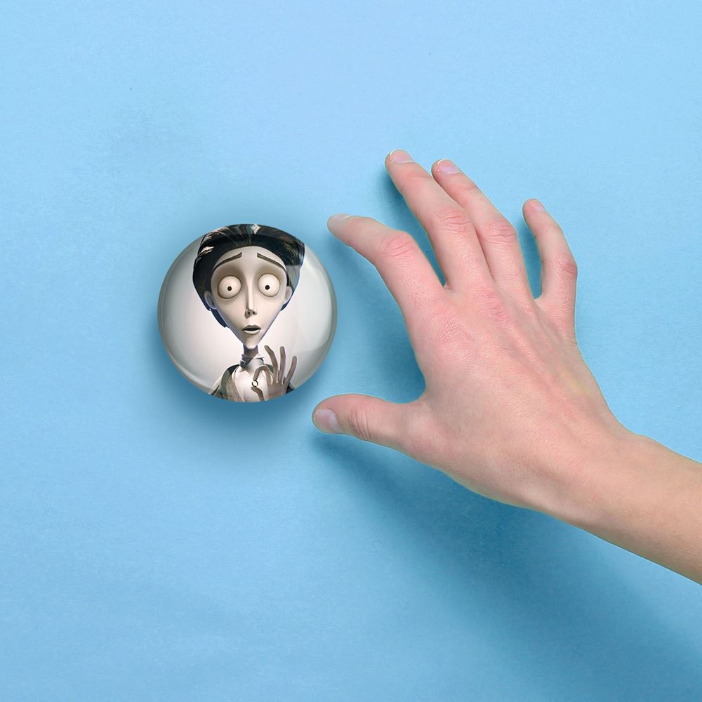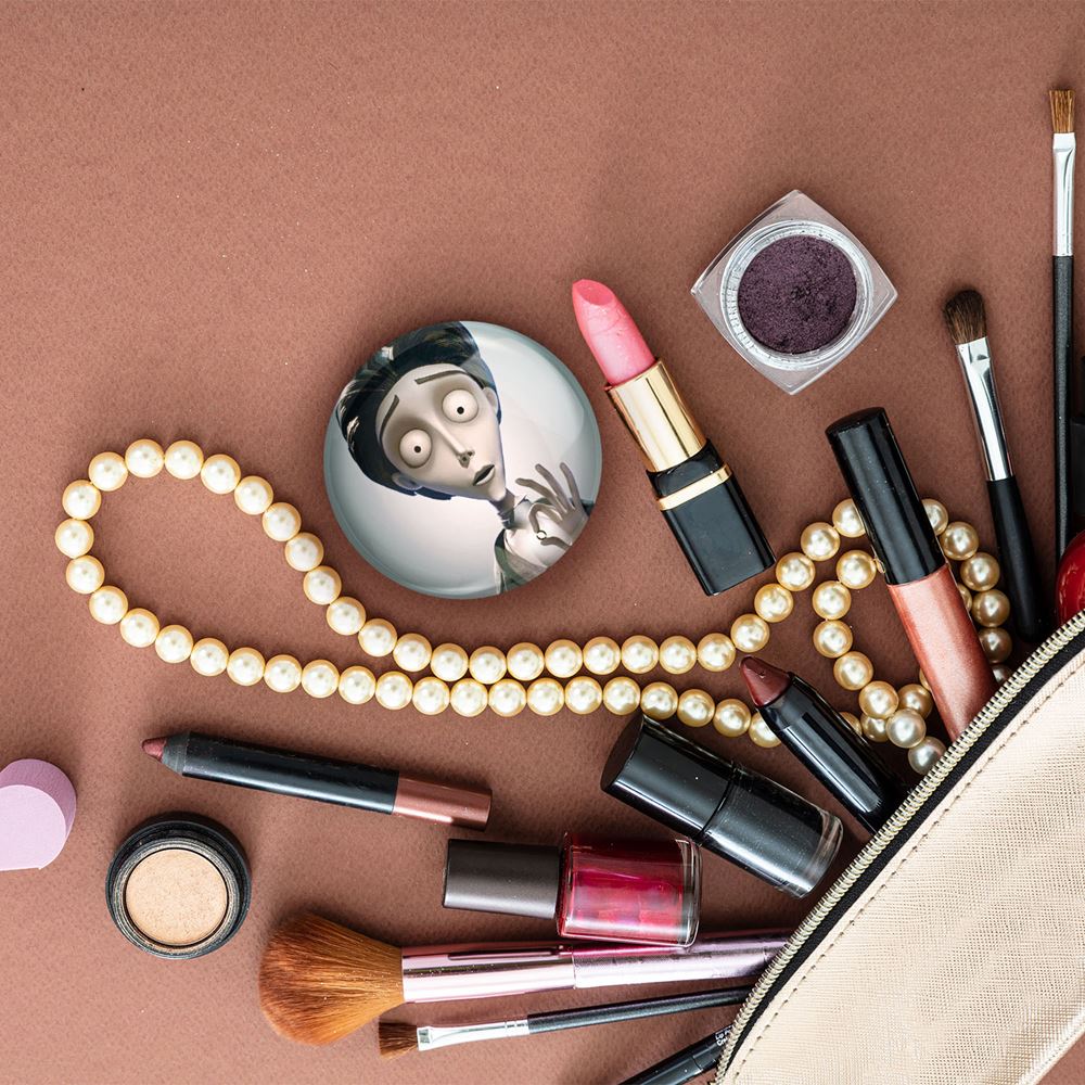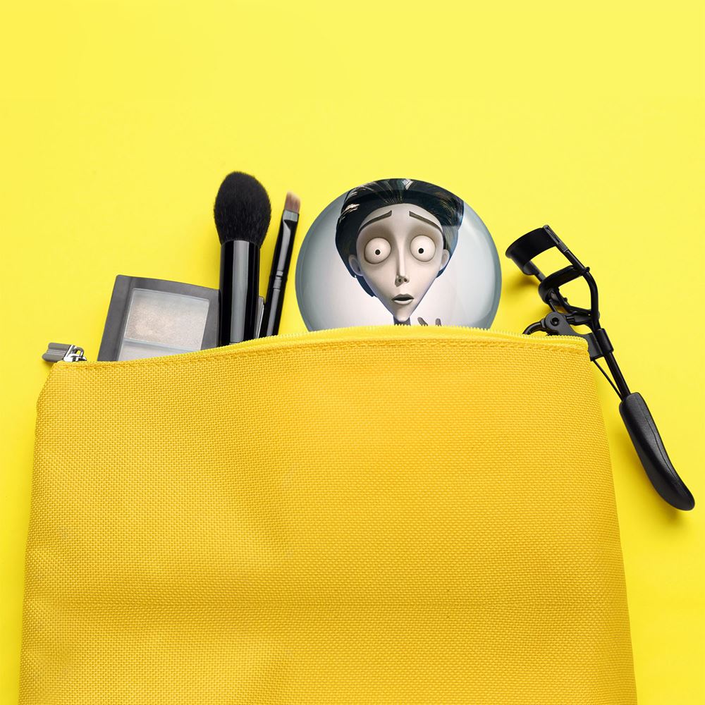 آینه های جیبی انیمیشن عروس مردگان خندالو دایره ای به قطر 7.5 سانتی متر می باشد که نه خیلی بزرگ و غیر قابل استفاده در کیف آرایشی ست و نه خیلی کوچک که تصویر خاصی در آن مشاهده نشود. سایزی استاندارد و کارآمد دارد و مناسب قرار گیری در کیف لوازم آرایش و کیف های کوچک دستی نیز هست.
