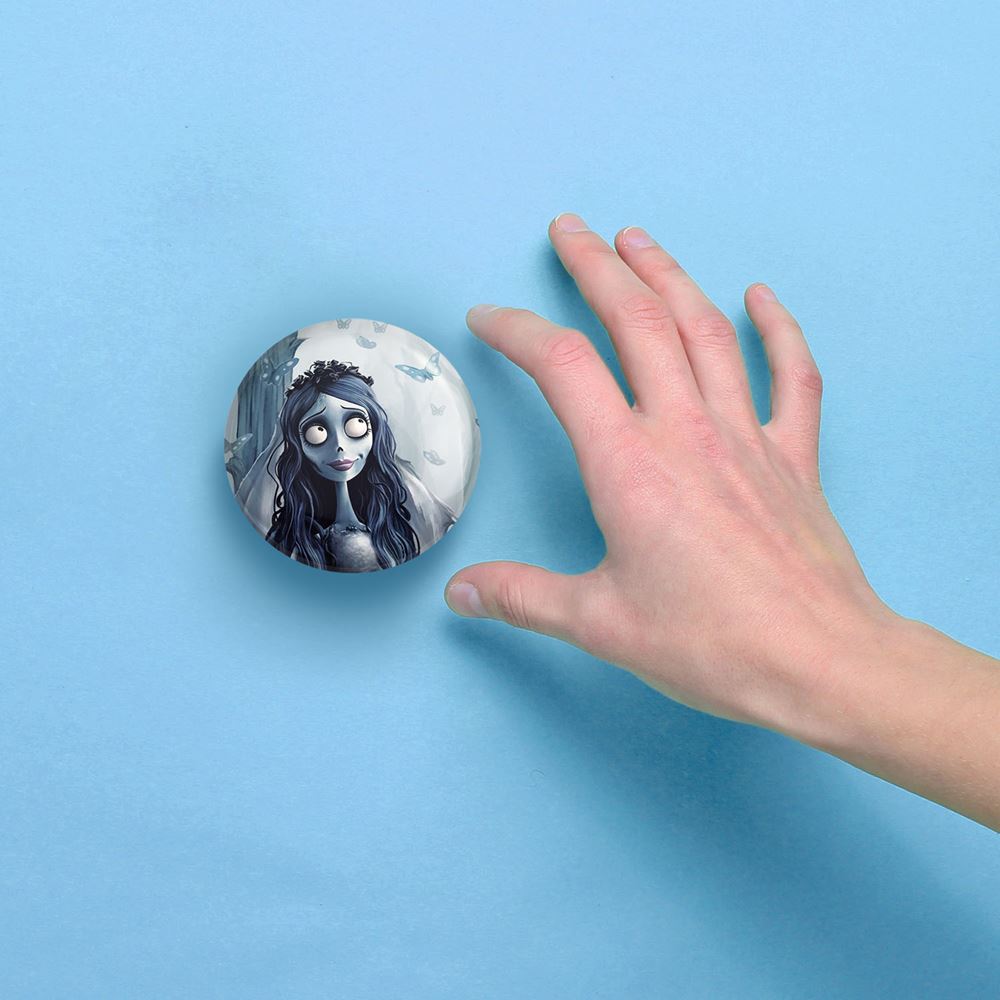 آینه های جیبی انیمیشن عروس مردگان خندالو دایره ای به قطر 7.5 سانتی متر می باشد که نه خیلی بزرگ و غیر قابل استفاده در کیف آرایشی ست و نه خیلی کوچک که تصویر خاصی در آن مشاهده نشود. سایزی استاندارد و کارآمد دارد و مناسب قرار گیری در کیف لوازم آرایش و کیف های کوچک دستی نیز هست.