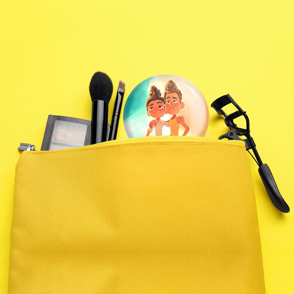 آینه های جیبی انیمیشن لوکا Luca خندالو دایره ای به قطر 7.5 سانتی متر می باشد که نه خیلی بزرگ و غیر قابل استفاده در کیف آرایشی ست و نه خیلی کوچک که تصویر خاصی در آن مشاهده نشود. سایزی استاندارد و کارآمد دارد و مناسب قرار گیری در کیف لوازم آرایش و کیف های کوچک دستی نیز هست.