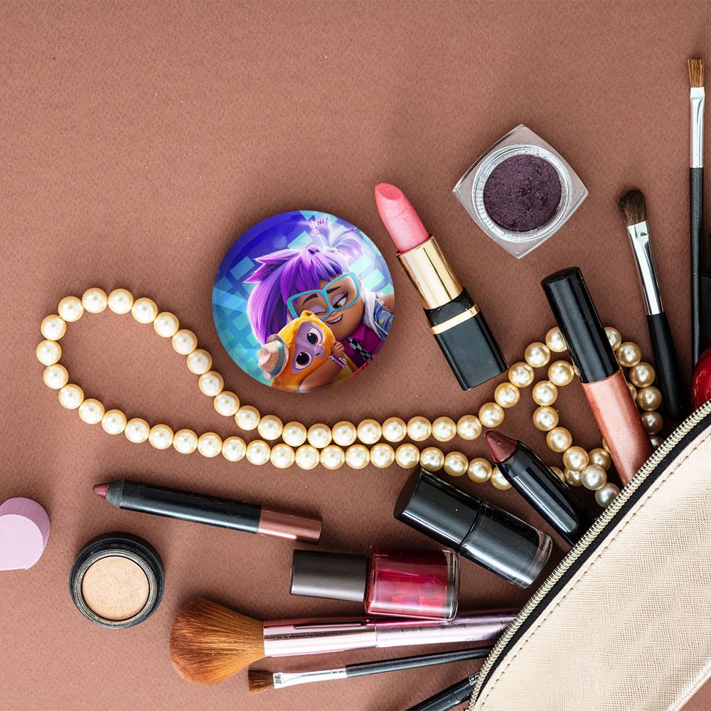 آینه های جیبی انیمیشن ویوو Vivo خندالو دایره ای به قطر 7.5 سانتی متر می باشد که نه خیلی بزرگ و غیر قابل استفاده در کیف آرایشی ست و نه خیلی کوچک که تصویر خاصی در آن مشاهده نشود. سایزی استاندارد و کارآمد دارد و مناسب قرار گیری در کیف لوازم آرایش و کیف های کوچک دستی نیز هست.