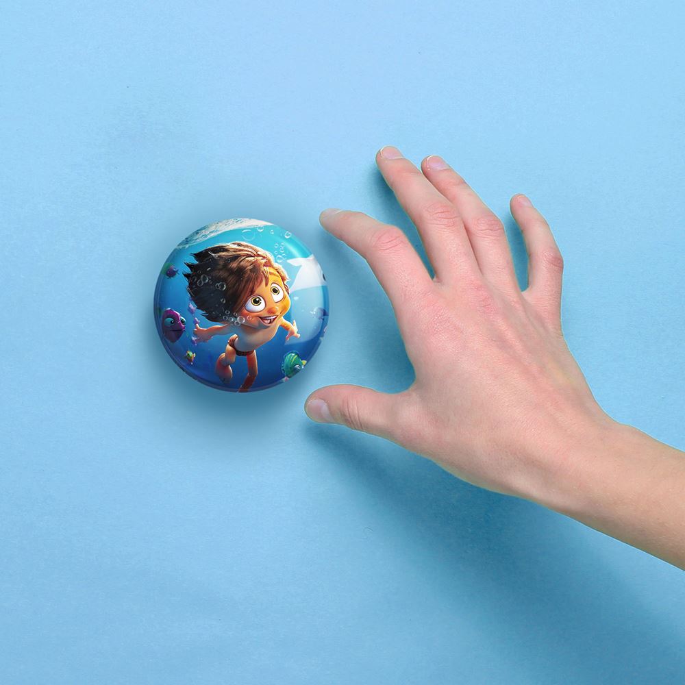 آینه های جیبی انیمیشن پسر دلفینی خندالو دایره ای به قطر 7.5 سانتی متر می باشد که نه خیلی بزرگ و غیر قابل استفاده در کیف آرایشی ست و نه خیلی کوچک که تصویر خاصی در آن مشاهده نشود. سایزی استاندارد و کارآمد دارد و مناسب قرار گیری در کیف لوازم آرایش و کیف های کوچک دستی نیز هست.