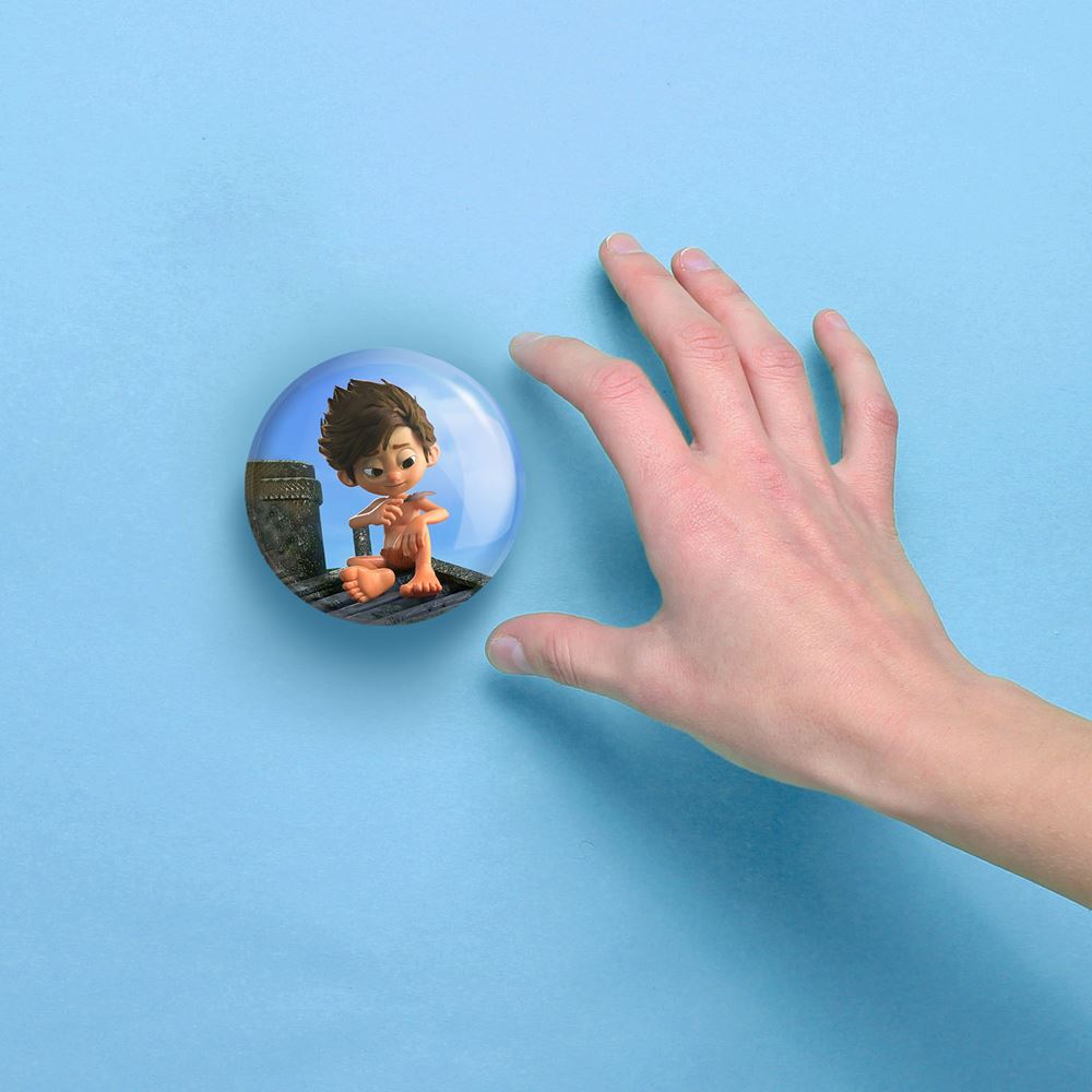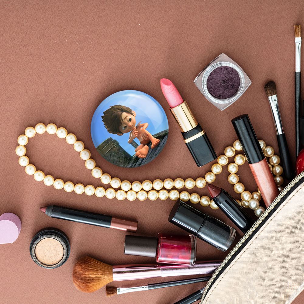 آینه های جیبی انیمیشن پسر دلفینی خندالو دایره ای به قطر 7.5 سانتی متر می باشد که نه خیلی بزرگ و غیر قابل استفاده در کیف آرایشی ست و نه خیلی کوچک که تصویر خاصی در آن مشاهده نشود. سایزی استاندارد و کارآمد دارد و مناسب قرار گیری در کیف لوازم آرایش و کیف های کوچک دستی نیز هست.