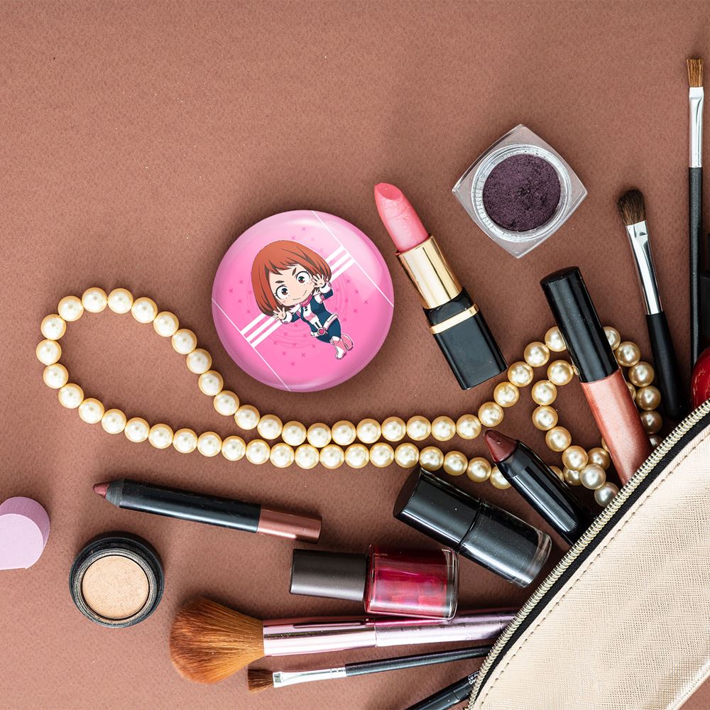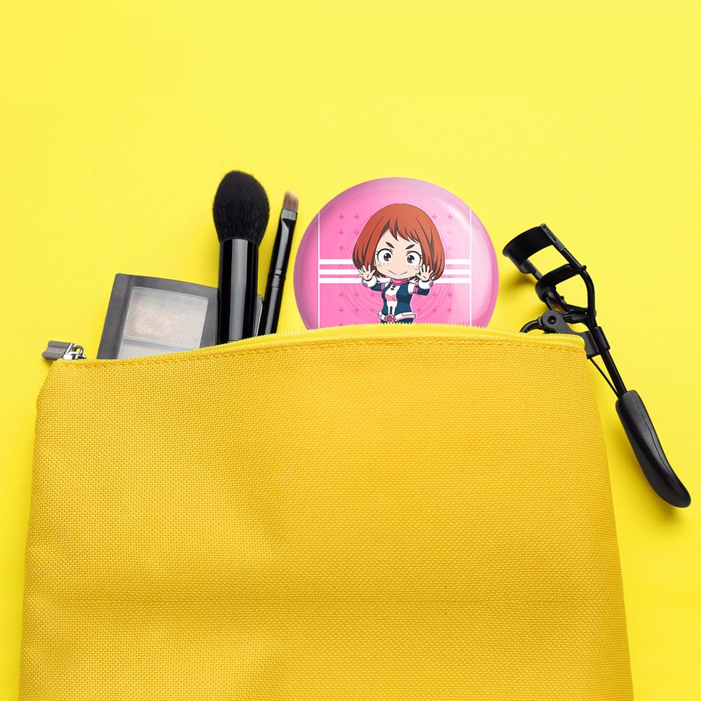 آینه های جیبی اوراراکا انیمه آکادمی قهرمان من خندالو دایره ای به قطر 7.5 سانتی متر می باشد که نه خیلی بزرگ و غیر قابل استفاده در کیف آرایشی ست و نه خیلی کوچک که تصویر خاصی در آن مشاهده نشود. سایزی استاندارد و کارآمد دارد و مناسب قرار گیری در کیف لوازم آرایش و کیف های کوچک دستی نیز هست. بدنه ی آینه جیبی اوراراکا انیمه آکادمی قهرمان من در قسمتی که آینه را در بر گرفته فلزی بوده و ظاهر براق و بسیار زیبایی دارد. چاپ طرح در پشت آینه بوسیله چاپگرهای دیجیتال شش رنگ با شفافیت و کیفیتی مثال زدنی انجام گرفته و با روکش لمینت حرارتی پوشیده شده که در مقابل آسیب و خط و خش مقاوم بوده و کیفیت بالایی دارد. آینه های جیبی اوراراکا انیمه آکادمی قهرمان من خندالو با تنوع طرحی بسیار بالا، سلیقه هر نوع مخاطبی را تامین میکند.