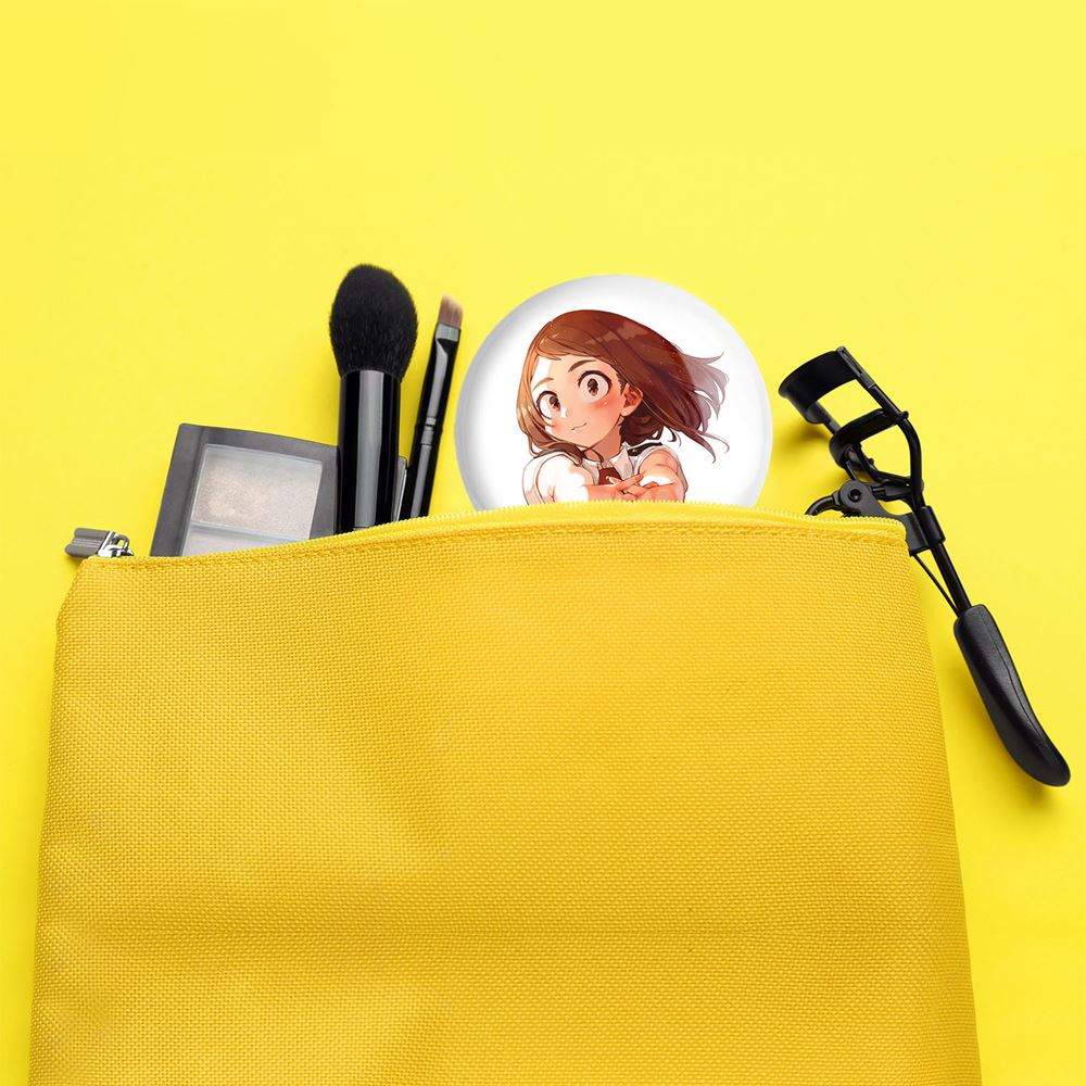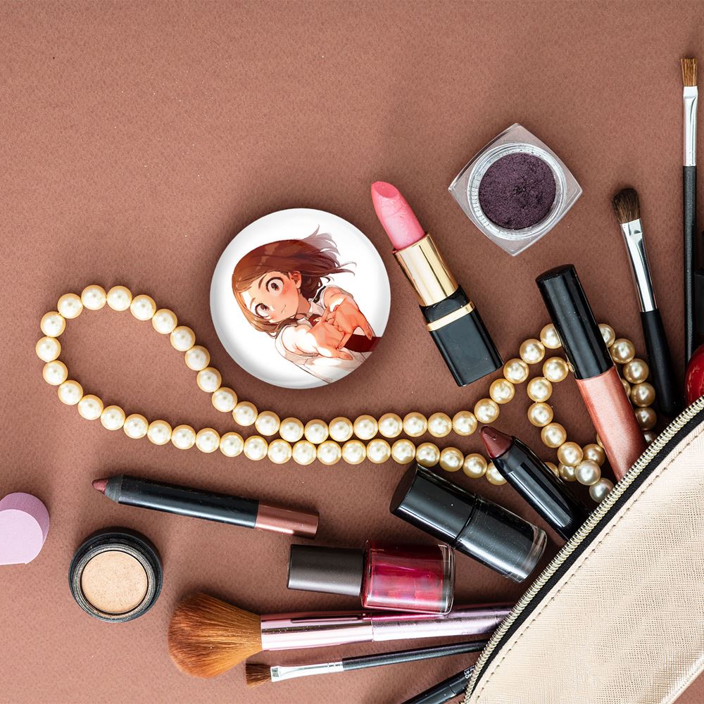 آینه های جیبی اوراراکا انیمه آکادمی قهرمان من خندالو دایره ای به قطر 7.5 سانتی متر می باشد که نه خیلی بزرگ و غیر قابل استفاده در کیف آرایشی ست و نه خیلی کوچک که تصویر خاصی در آن مشاهده نشود. سایزی استاندارد و کارآمد دارد و مناسب قرار گیری در کیف لوازم آرایش و کیف های کوچک دستی نیز هست. بدنه ی آینه جیبی اوراراکا انیمه آکادمی قهرمان من در قسمتی که آینه را در بر گرفته فلزی بوده و ظاهر براق و بسیار زیبایی دارد. چاپ طرح در پشت آینه بوسیله چاپگرهای دیجیتال شش رنگ با شفافیت و کیفیتی مثال زدنی انجام گرفته و با روکش لمینت حرارتی پوشیده شده که در مقابل آسیب و خط و خش مقاوم بوده و کیفیت بالایی دارد. آینه های جیبی اوراراکا انیمه آکادمی قهرمان من خندالو با تنوع طرحی بسیار بالا، سلیقه هر نوع مخاطبی را تامین میکند.