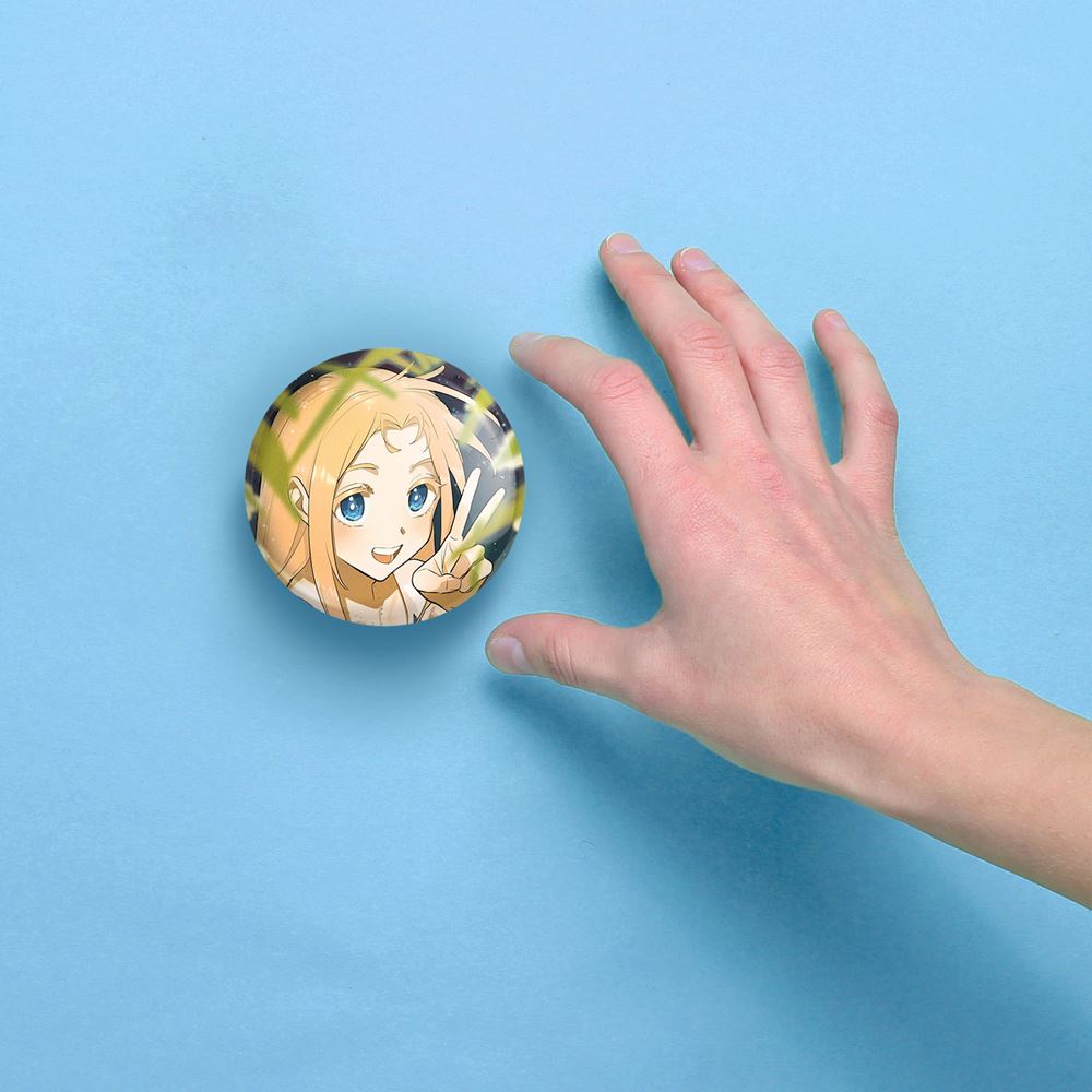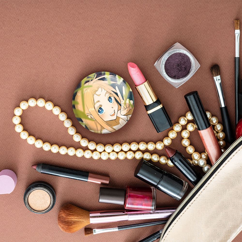 آینه های جیبی اوشیو انیمه سامرتایم رندرینگ خندالو دایره ای به قطر 7.5 سانتی متر می باشد که نه خیلی بزرگ و غیر قابل استفاده در کیف آرایشی ست و نه خیلی کوچک که تصویر خاصی در آن مشاهده نشود. سایزی استاندارد و کارآمد دارد و مناسب قرار گیری در کیف لوازم آرایش و کیف های کوچک دستی نیز هست.