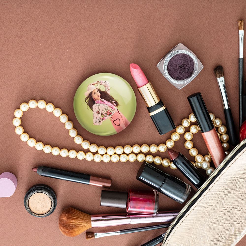 آینه های جیبی اولیویا رودریگو Olivia Rodrigo خندالو دایره ای به قطر 7.5 سانتی متر می باشد که نه خیلی بزرگ و غیر قابل استفاده در کیف آرایشی ست و نه خیلی کوچک که تصویر خاصی در آن مشاهده نشود. سایزی استاندارد و کارآمد دارد و مناسب قرار گیری در کیف لوازم آرایش و کیف های کوچک دستی نیز هست.