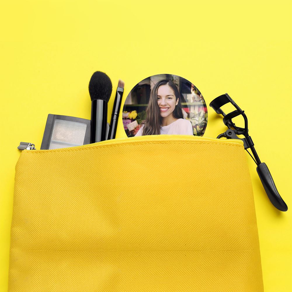آینه های جیبی اولیویا رودریگو Olivia Rodrigo خندالو دایره ای به قطر 7.5 سانتی متر می باشد که نه خیلی بزرگ و غیر قابل استفاده در کیف آرایشی ست و نه خیلی کوچک که تصویر خاصی در آن مشاهده نشود. سایزی استاندارد و کارآمد دارد و مناسب قرار گیری در کیف لوازم آرایش و کیف های کوچک دستی نیز هست.