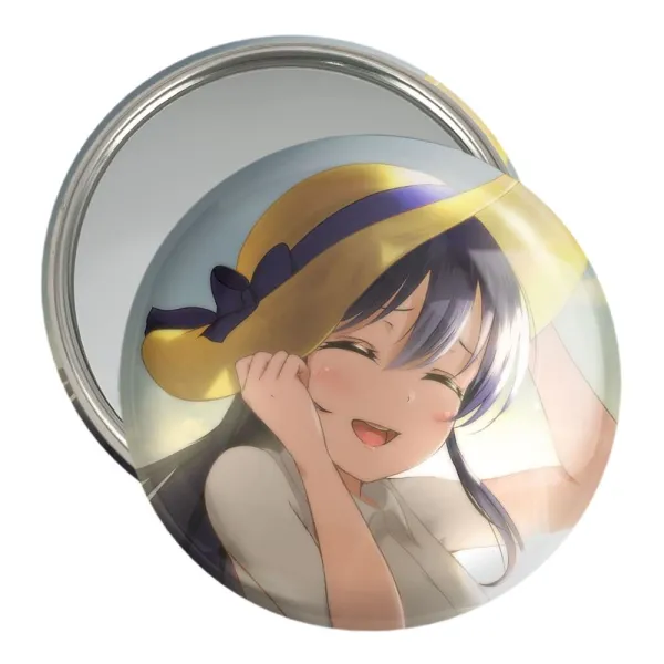آینه های جیبی اومی سونادا انیمه لاو لایو Love Live خندالو دایره ای به قطر 7.5 سانتی متر می باشد که نه خیلی بزرگ و غیر قابل استفاده در کیف آرایشی ست و نه خیلی کوچک که تصویر خاصی در آن مشاهده نشود. سایزی استاندارد و کارآمد دارد و مناسب قرار گیری در کیف لوازم آرایش و کیف های کوچک دستی نیز هست. بدنه ی آینه جیبی اومی سونادا انیمه لاو لایو Love Live در قسمتی که آینه را در بر گرفته فلزی بوده و ظاهر براق و بسیار زیبایی دارد. چاپ طرح در پشت آینه بوسیله چاپگرهای دیجیتال شش رنگ با شفافیت و کیفیتی مثال زدنی انجام گرفته و با روکش لمینت حرارتی پوشیده شده که در مقابل آسیب و خط و خش مقاوم بوده و کیفیت بالایی دارد. آینه های جیبی اومی سونادا انیمه لاو لایو Love Live خندالو با تنوع طرحی بسیار بالا، سلیقه هر نوع مخاطبی را تامین میکند.
